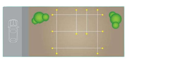 ⦁ Extender los tramos de la cuerda sobre las líneas en cuestión. Si son líneas perpendiculares los extremos del tramo de 5 m. coincidirá con las líneas en cuestión perfectamente, de lo contrario indicará un error y habrá que volver a trazar. Igualmente para verificar que un rectángulo está perfectamente trazado se puede utilizar el método de las diagonales: