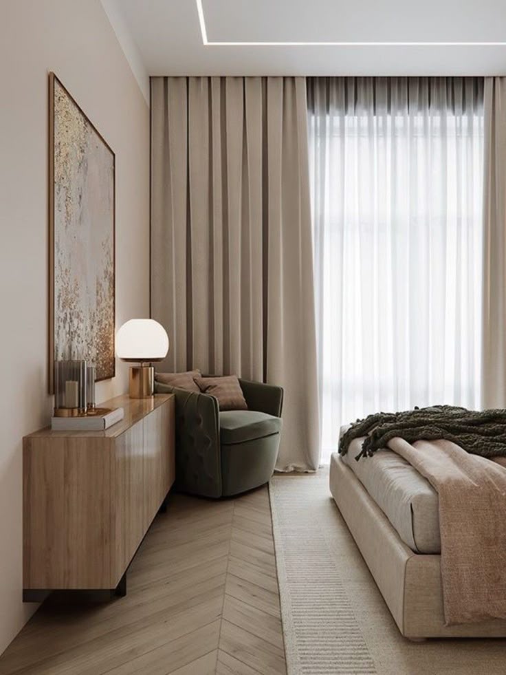 🧵 Consejo: Busca telas con caída natural como lino o lino poliéster en tonos claros. Instálalas del techo al piso.