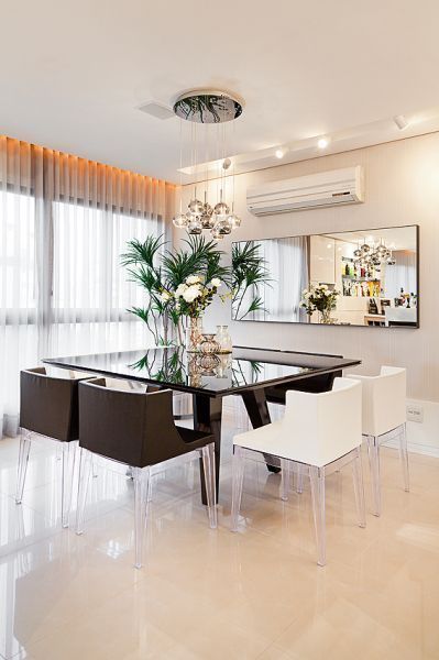 Te recomendamos utilizar materiales con transparencias como el vidrio y el acrílico ya que dejan pasar la luz y además no ocupan mucho espacio visual. ¡Son perfectos para un departamento pequeño!