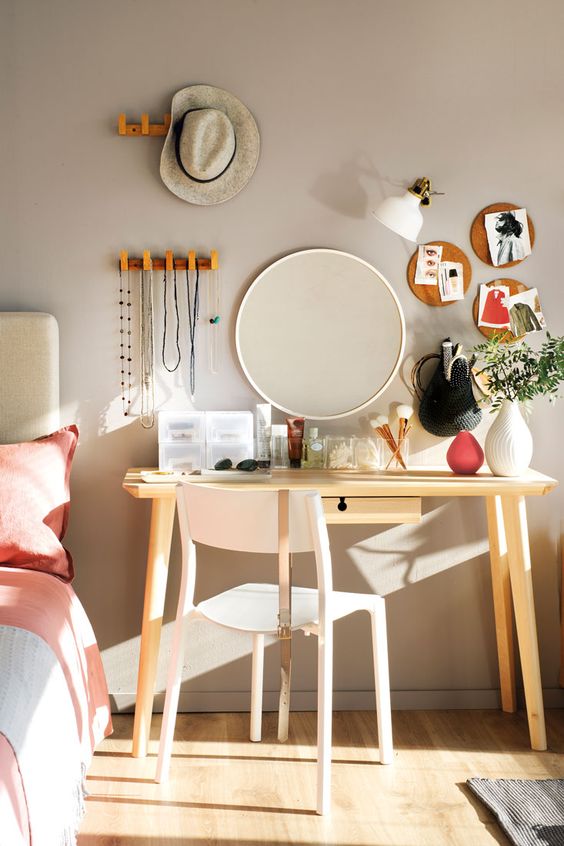 La recámara, al igual que la estancia, el recibidor y comedor con otras áreas dentro del hogar ideales para colocar un espejo redondo ya que creará una sensación de ampitud, continuidad y visualmente crearemos un espacio único con mucha iluminación.