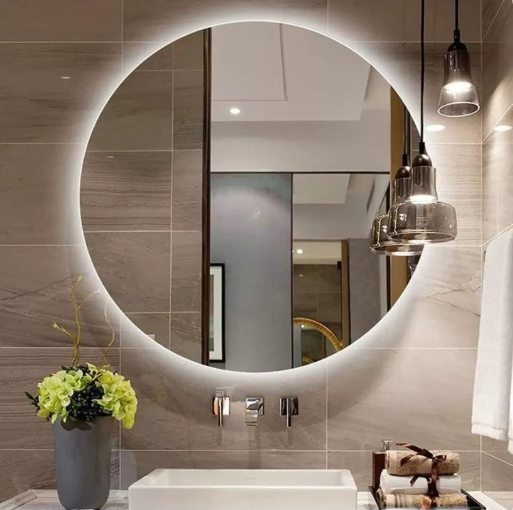 El baño es sin duda el lugar idóneo para colocar un espejo, ya que es el espacio donde nos arreglamos antes de salir de casa. Puedes agregar luz en la parte posterior de tu espejo para darle un toque único, además de funcional.