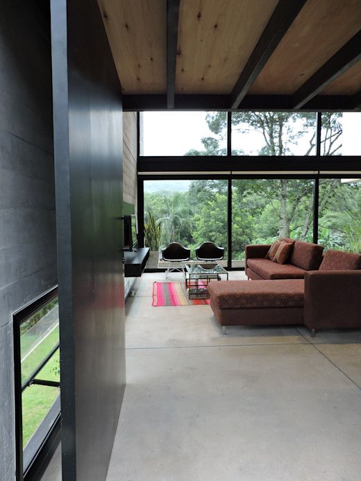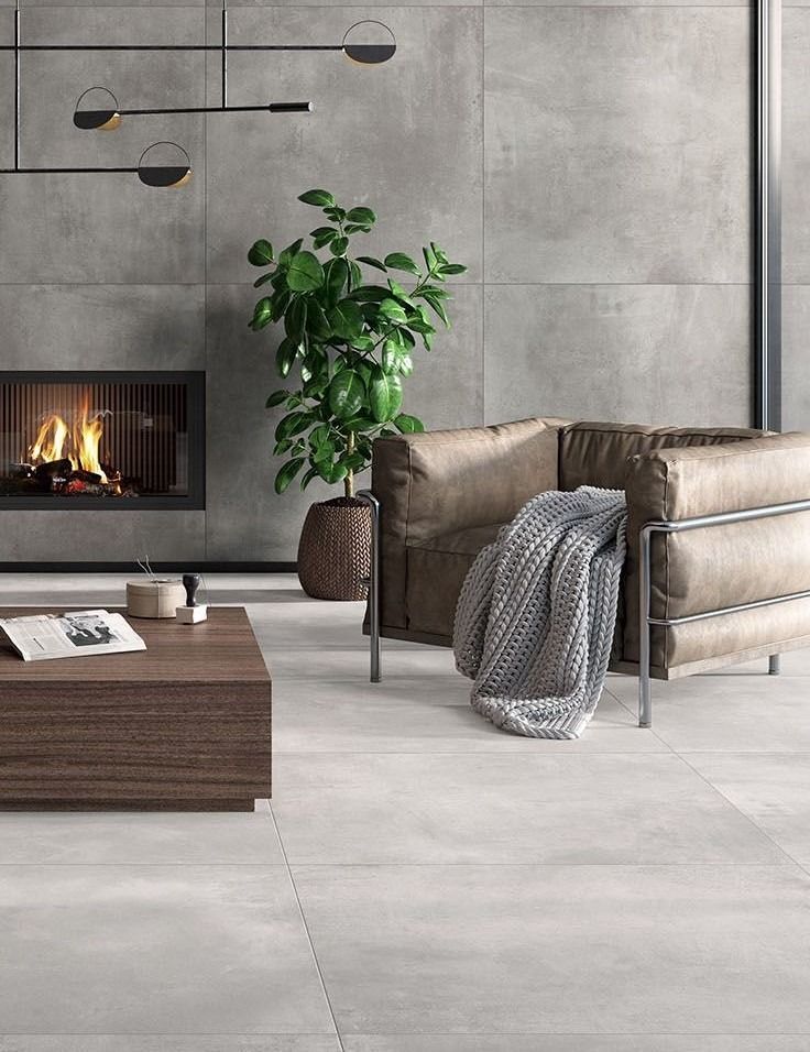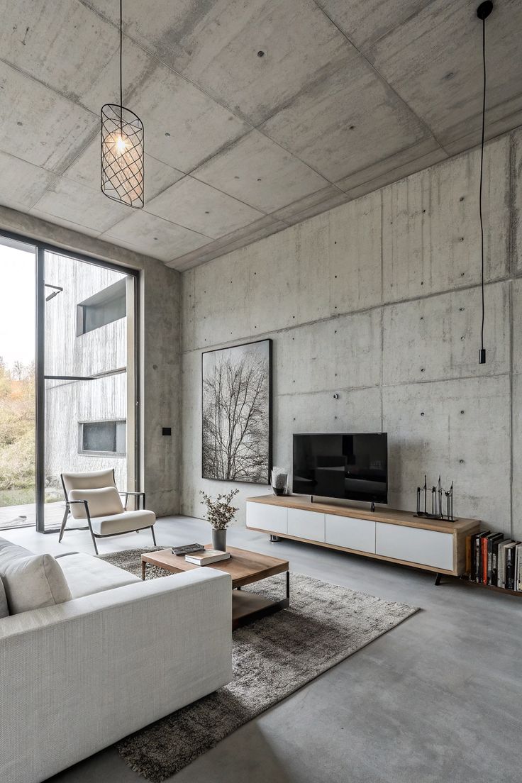➡ Recomendación: Usa concreto pulido en tono beige o arena y agrégale alfombras y muebles de madera robusta.