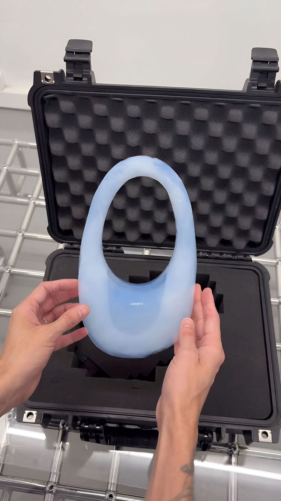 Presentada como una edición limitada de solo una pieza, esta bolsa fue impresa en 3D en vidrio por científicos del MIT. Está hueca, etérea, casi inexistente. Un guiño a lo intangible, a la transparencia, a lo que no se puede poseer realmente.