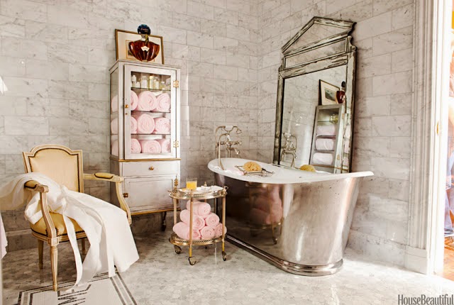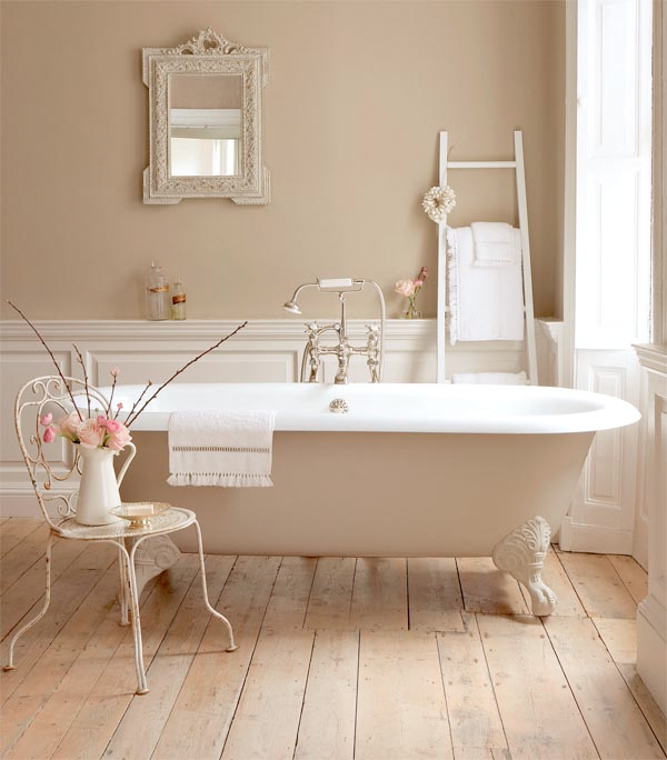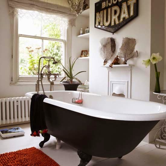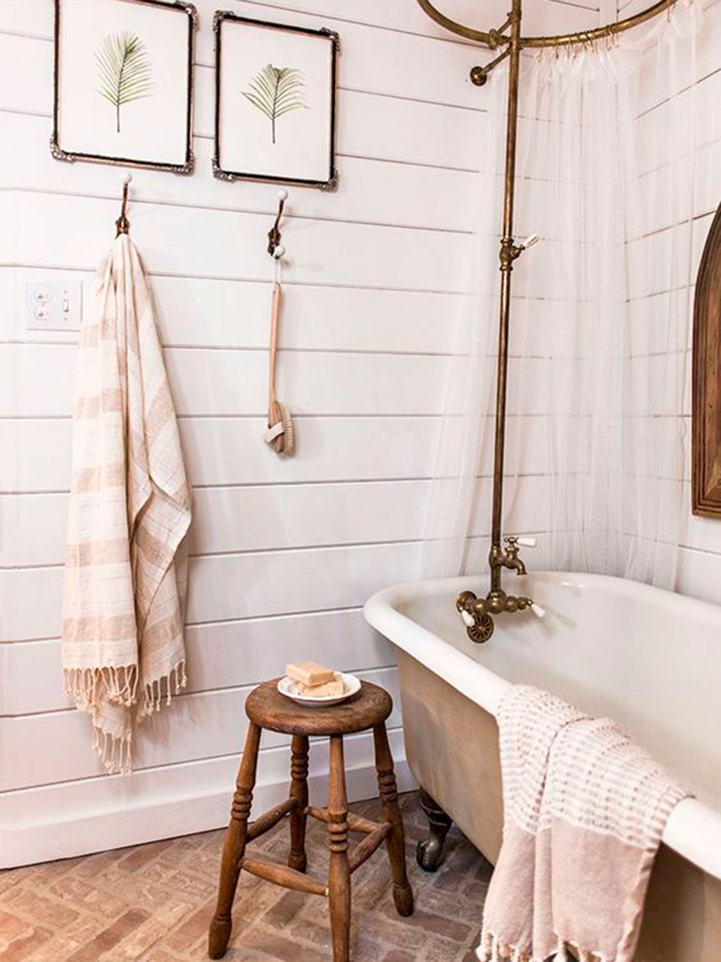 Opta por una bañera antigua y cortinas.