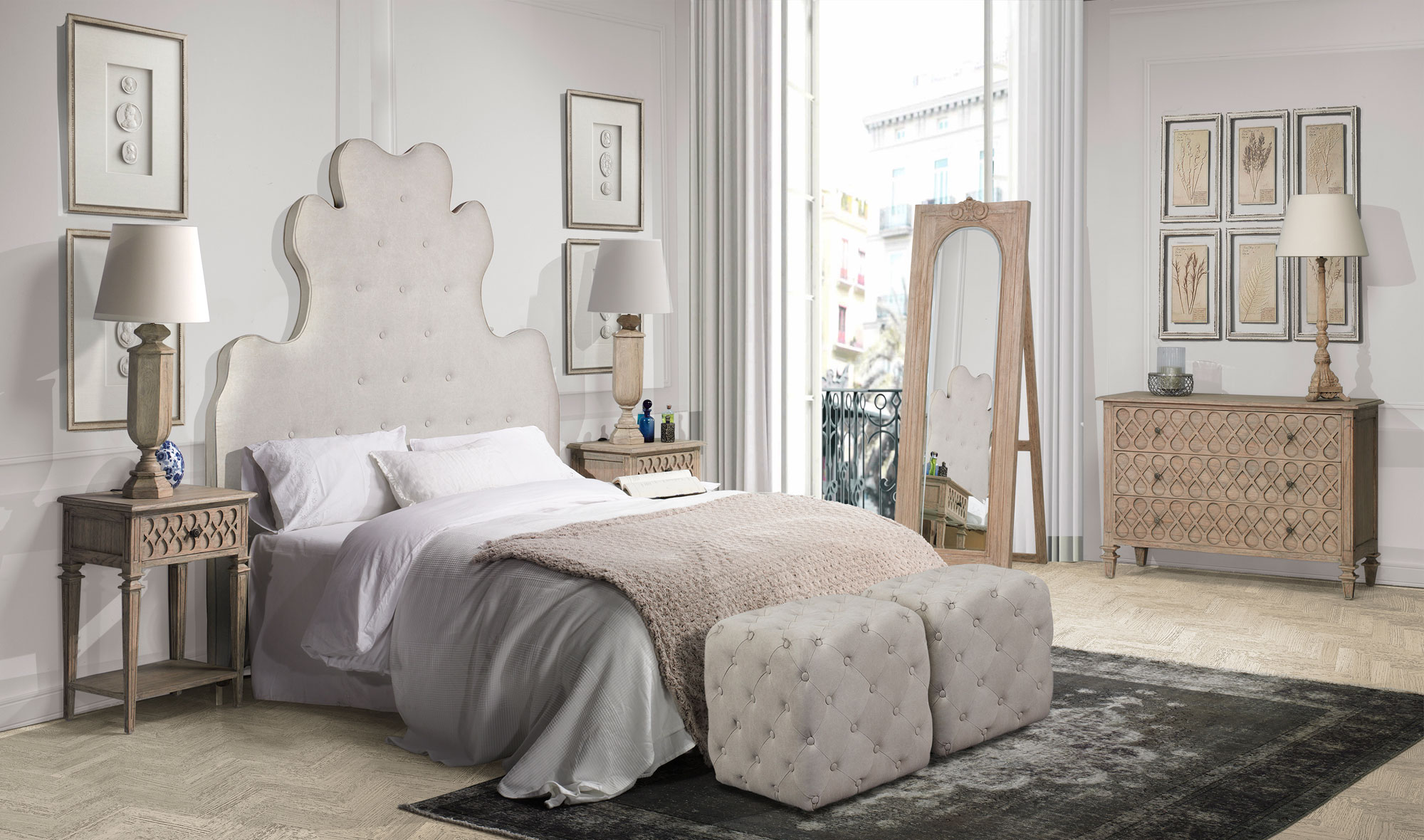 Para la mesa de noche te recomendamos bién un estilo afrancesadoen madera oscura o blanco decapado.
