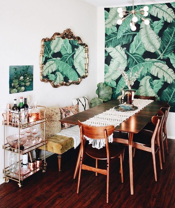 Para la pared de este espacio te recomendamos colocar un espejo tipo imperio, ovalado o rectangular. También puedes colgar fotografías con marcos de distintas formas, tamaños y acabados siguiendo las técnicas características de este estilo.