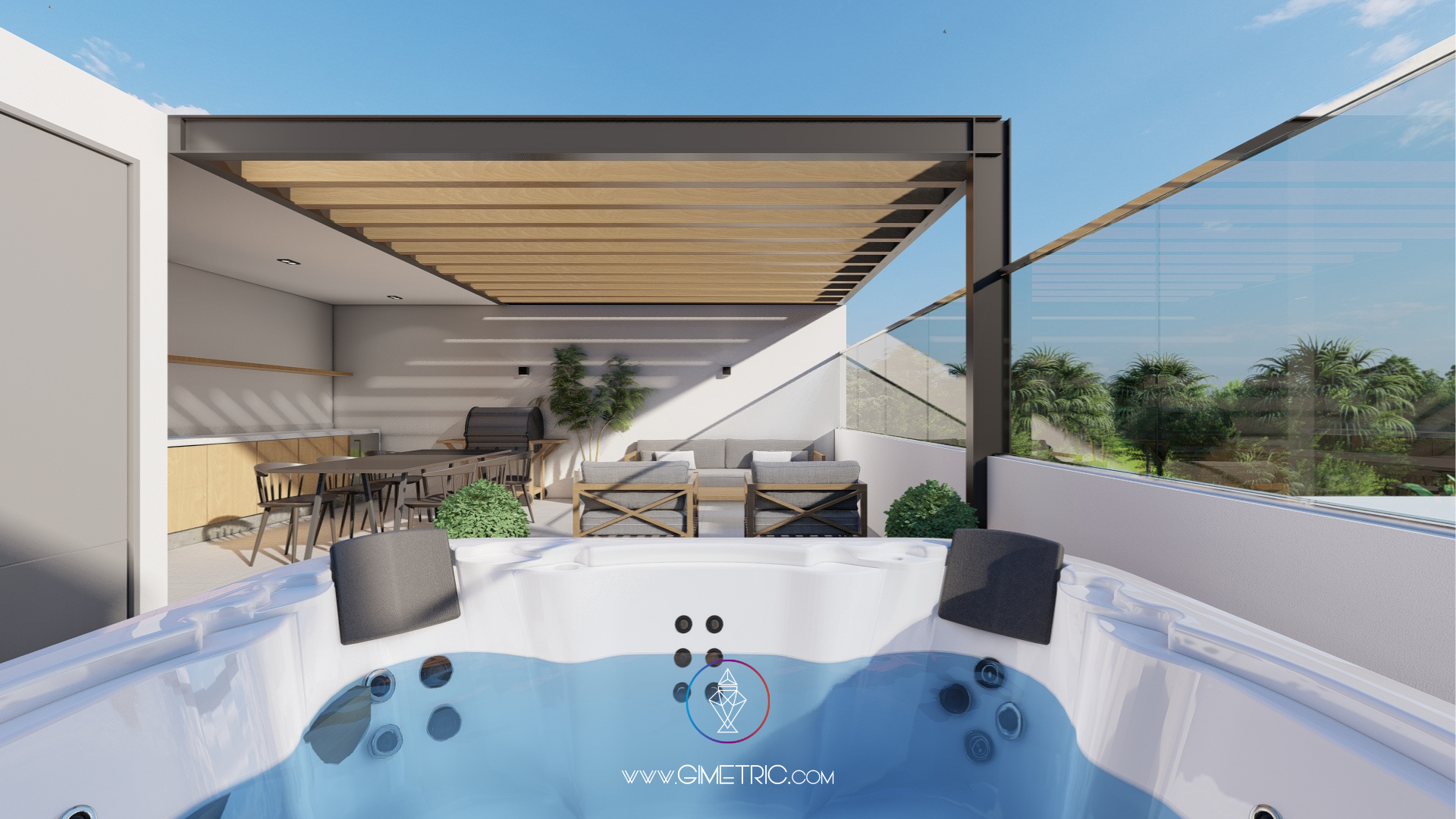 Ubicada en el tercer nivel, la terraza privada con jacuzzi es el rincón perfecto para relajarse y disfrutar de una impresionante vista. Desde esta área, logramos ofrecer un ambiente de tranquilidad apartado de los vecinos, ideal para desconectarse.
