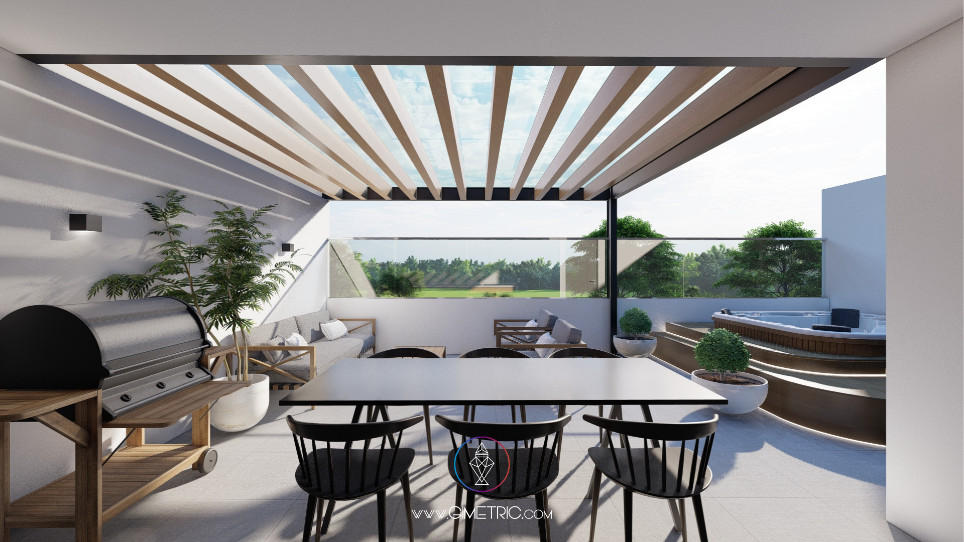 Terraza con asador, sala y jacuzzi