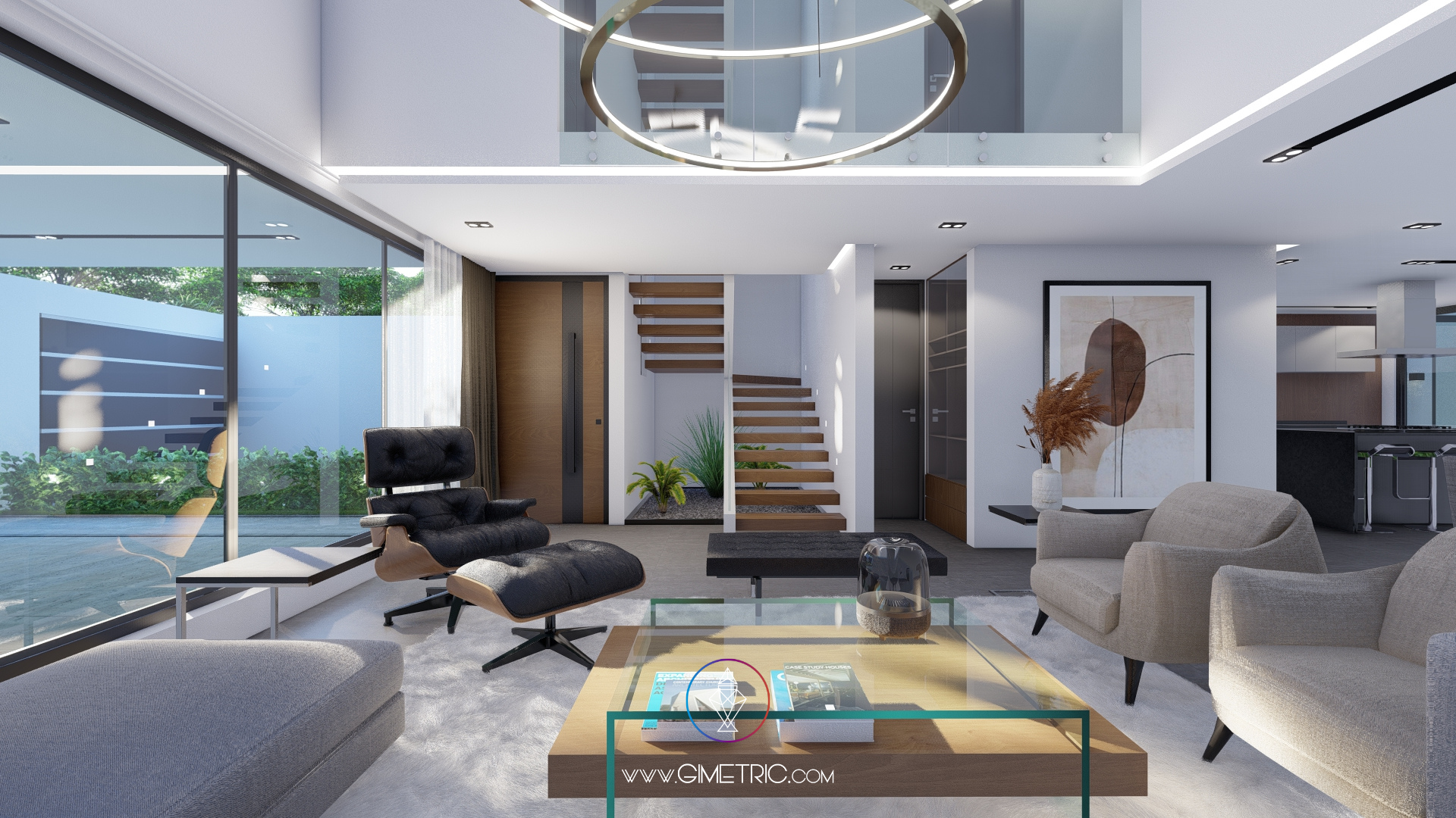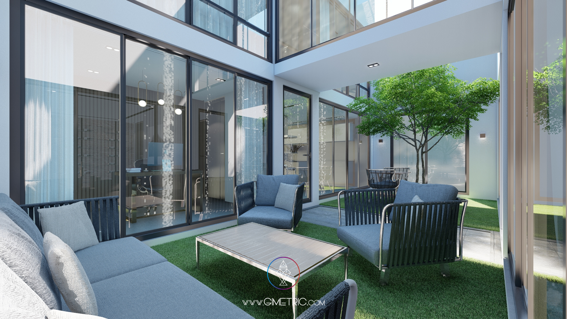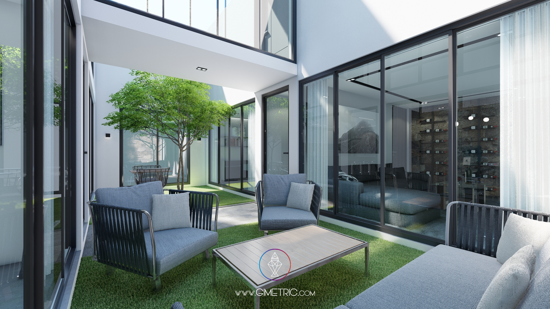 Jardín central: Este oasis verde proporciona una vista relajante desde cualquier ángulo de la casa, asegurando un respiro natural en medio de la arquitectura.