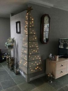 Aquí te dejamos otra idea que puede ser excelente para espacios pequeños es bastante económica y fácil de colocar, solo basta con tener una serie de pino y muchas luces!