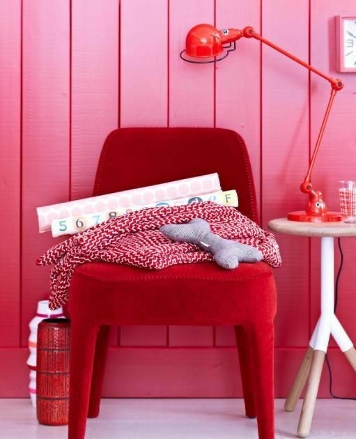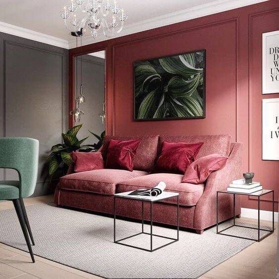 Si tu hogar esta rodeado de mucha naturaleza, los tonos de rojo, como la terracota o el coral pueden ser maravillosos colores de decoración. Para añadir un pop de color muy vibrante, la mezcla de rojo con colores primarios, amarillos, verdes y azules, por ejemplo, la pintura de las puertas, marcos de ventanas o los asientos en la sala. En una sala formal, el uso de un rojo intenso, oscuro, como el burdeos, puede complementar perfectamente la decoración de la misma o utilizarse como color de acento en una sola pared.