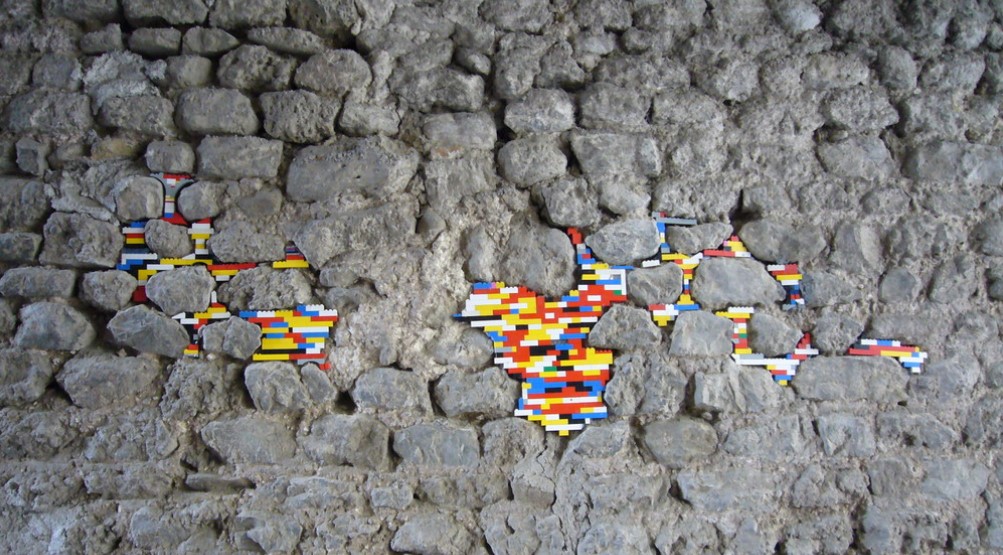 El artista urbano Jan Vormann usa ladrillos de Lego para reparar y rellenar huecos en estructuras dañadas alrededor del mundo!