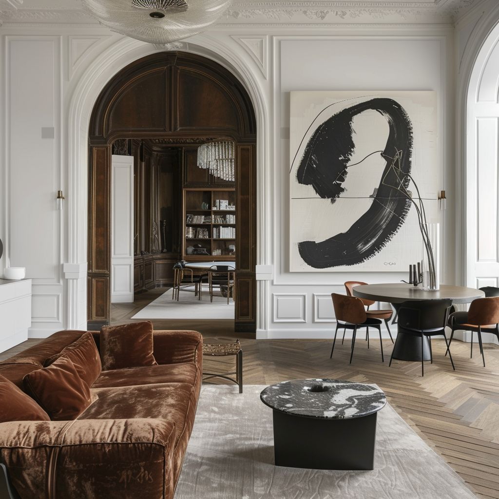 Este estilo celebra el lujo silencioso, el arte como eje del espacio y la belleza de los contrastes.