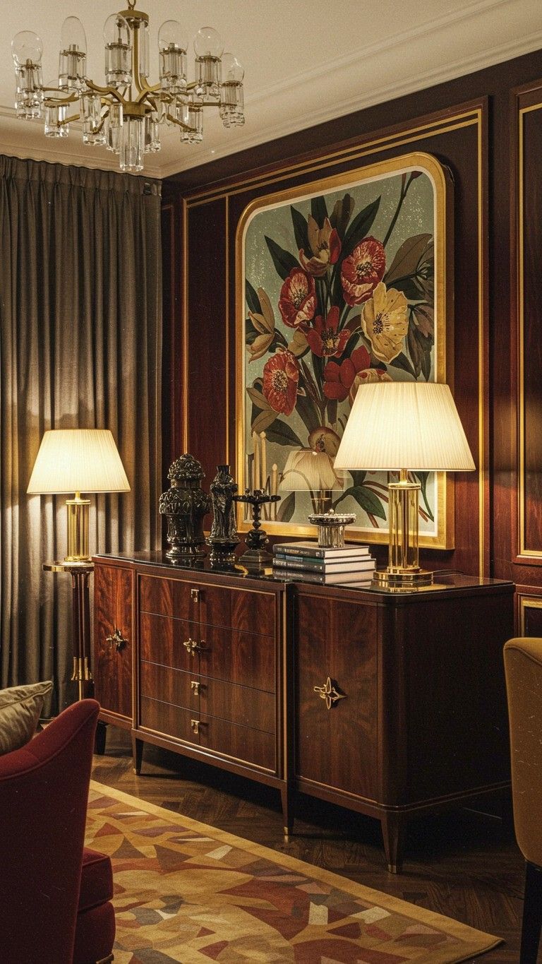 Este estilo es ideal para quienes buscan un interior con glamour intelectual, un ambiente elegante sin ostentación que respira cultura y buen gusto.