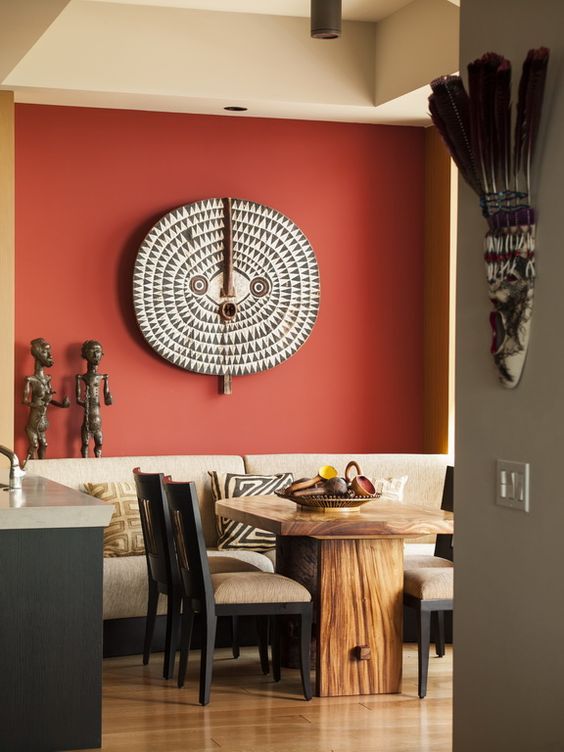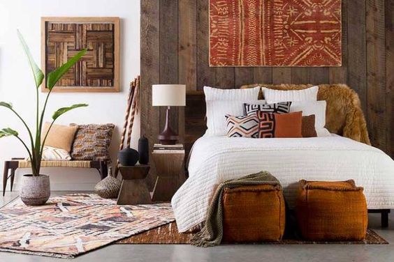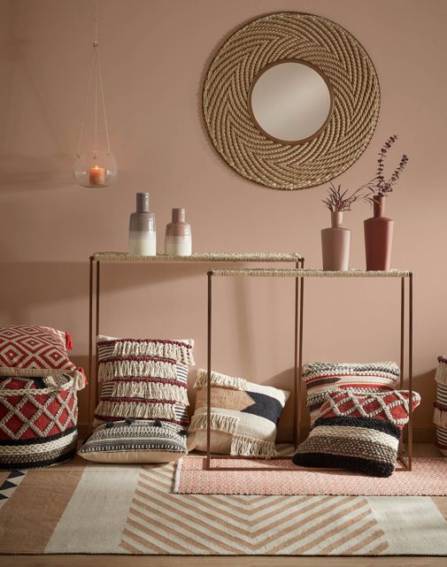 Aunque el estilo étnico suele optar por los tonos neutros combinados con cálidos, como marrones, beiges o grises, colores muy terracota, también se puede optar por el color.