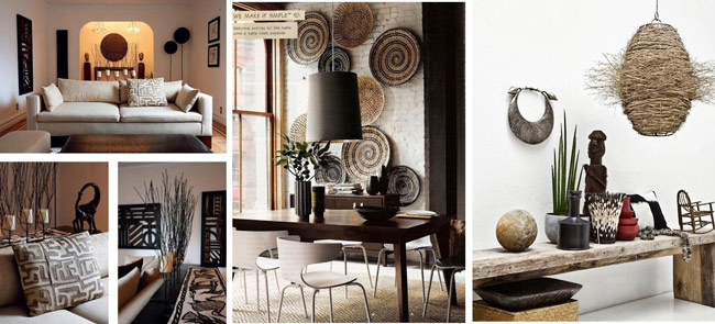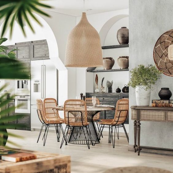 Además, el uso de la cestería además se aplica también en este estilo a otros elementos, como lámparas o platos decorativos o juju hats.