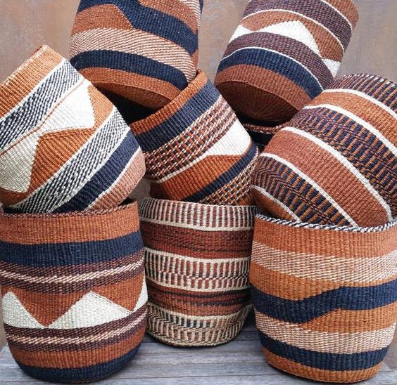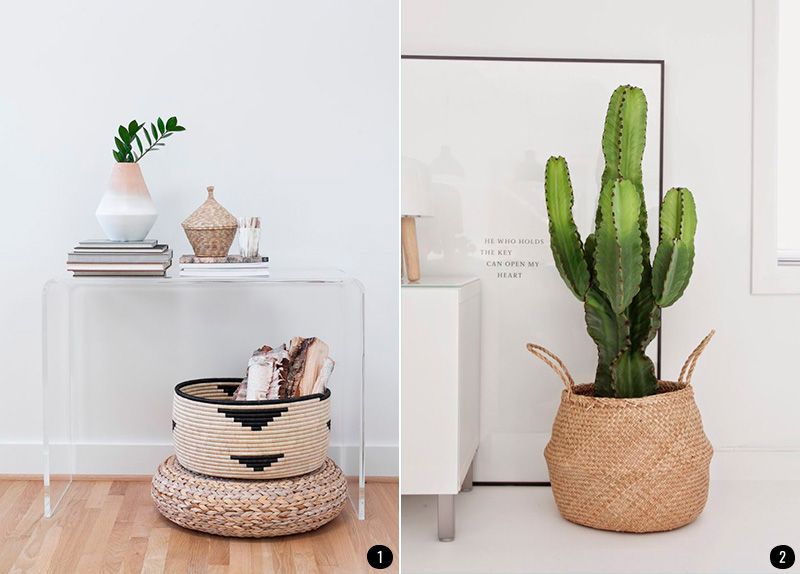 Los cestos son uno de los elementos artesanales más típicos en cualquier cultura rural. El mimbre y la cuerda son materiales naturales que se utilizan para elaborar todo tipo de cestería, si bien en el estilo étnico suelen incorporar líneas en tonos crudos y negros o diseños geométricos.