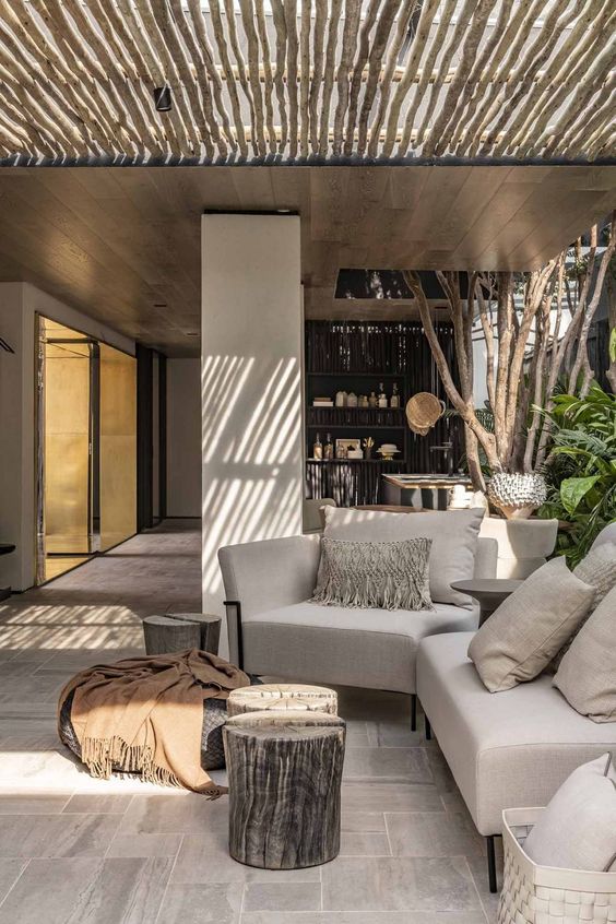 Los troncos son elementos ligados a la tierra. El trabajo con los troncos de árbol, los encontramos tanto a mesas de centro como auxiliares, así como a bloques utilizados como pedestal de apoyo para lavabos de baño o esculturas decorativas.