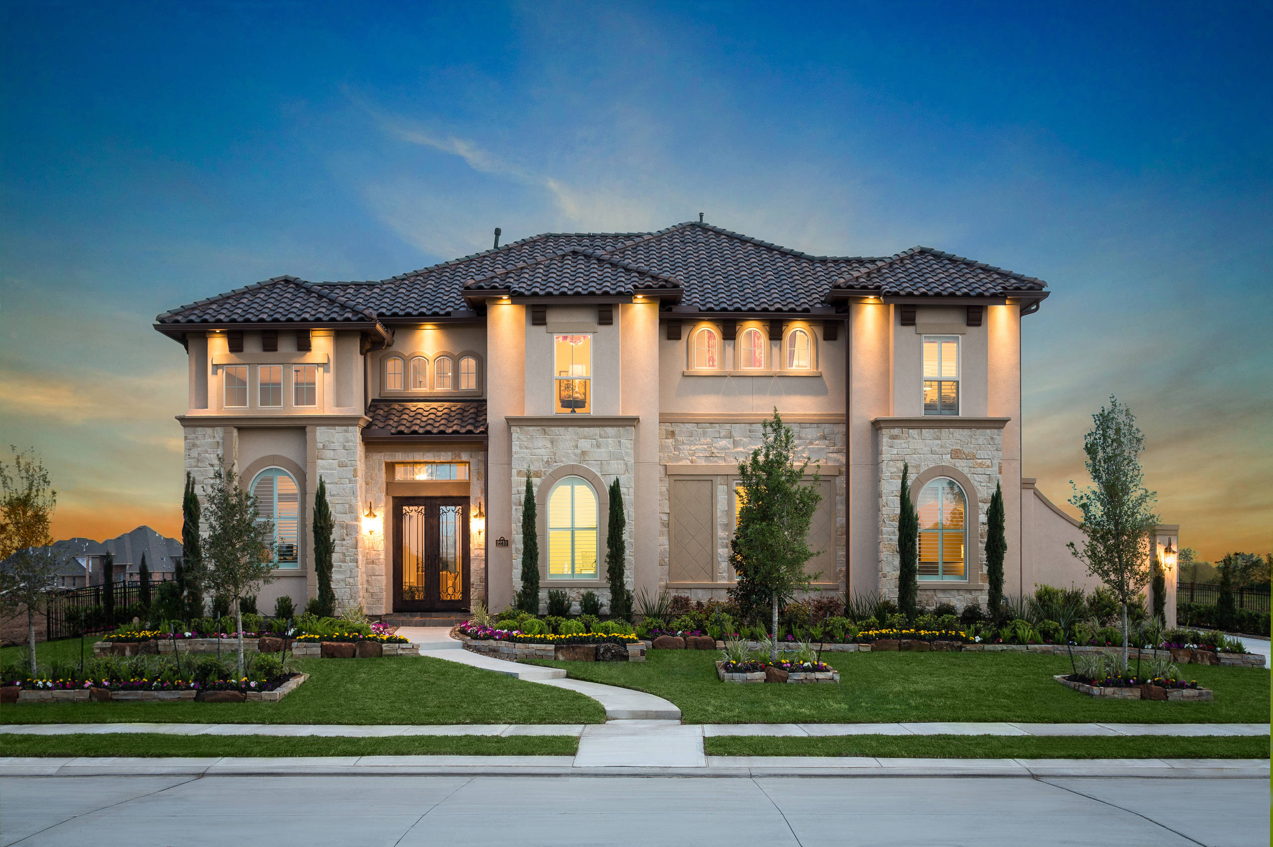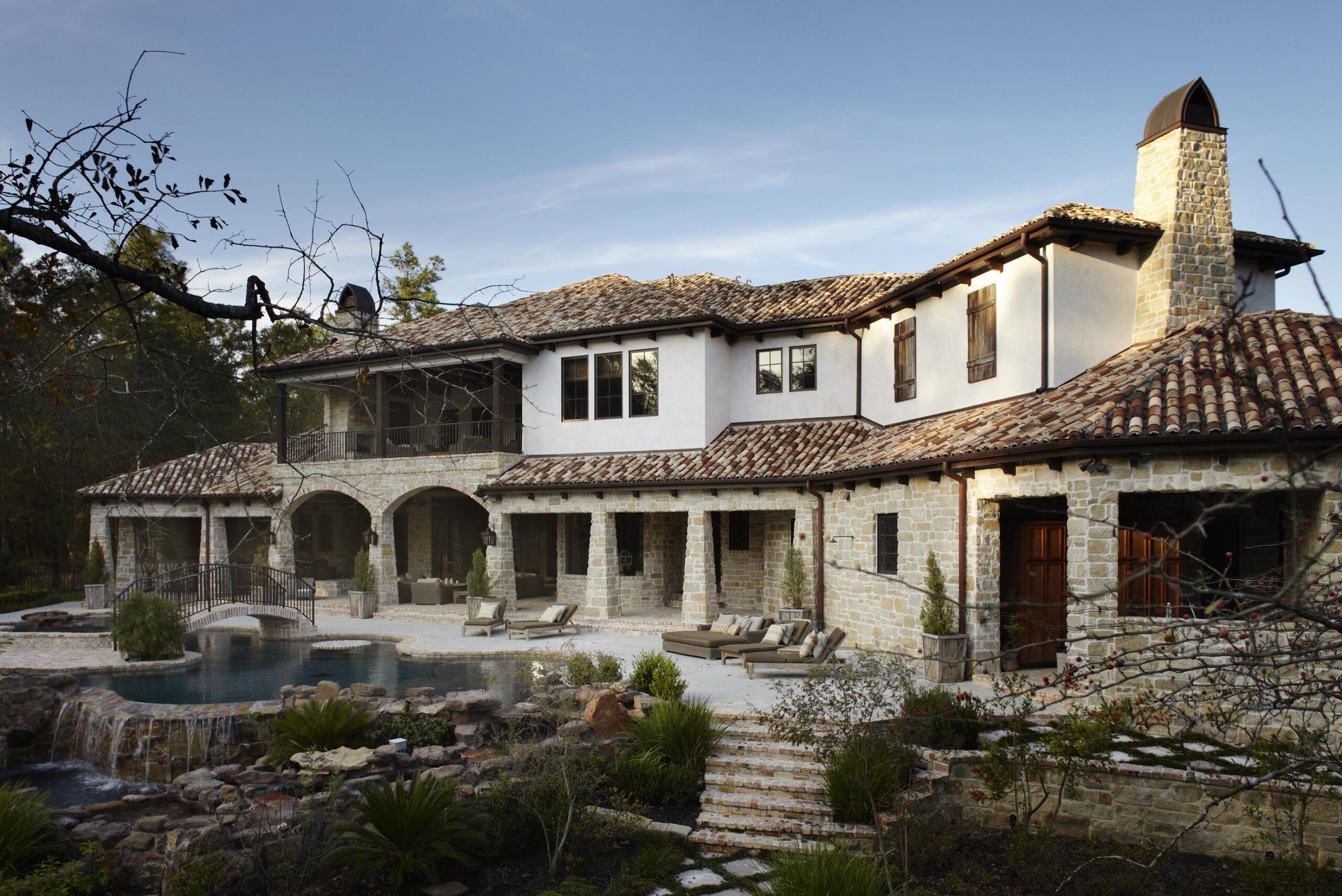Este estilo fué extremadamente popular en Estados Unidos entre 1918 y 1940. Se hizo eco de las haciendas en el Nuevo Mundo español con sus techos de tejas rojas, arcos y yeso áspero para parecerse al adobe enlucido. Este estilo nuevamente se está volviendo muy popular y cuenta con una gran cantidad de los elementos de diseño originales, incluyendo pórticos, balcones y detalles ornamentales como puertas de madera pesada y azulejos multicolores.