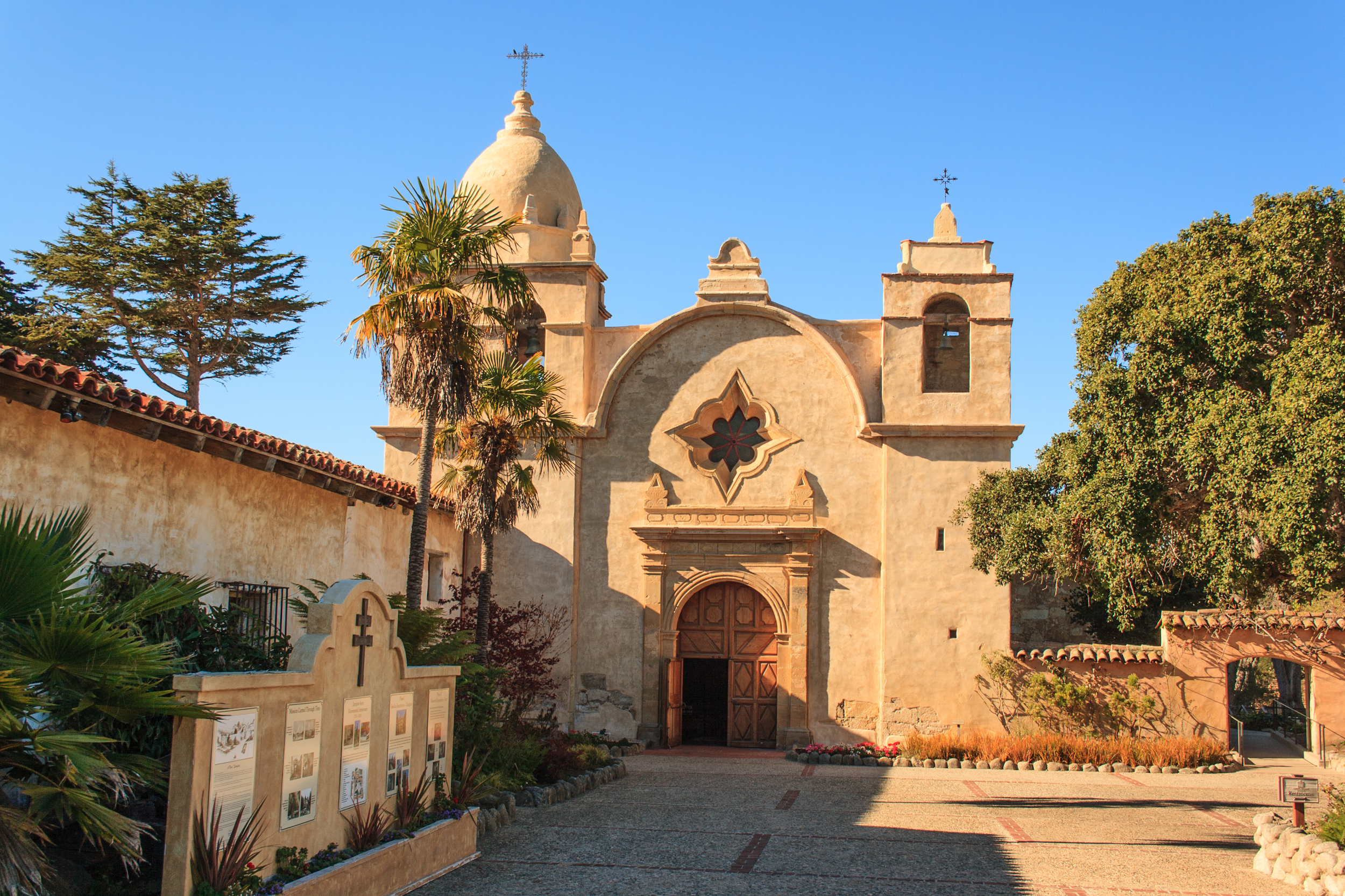 El arco en la parte superior de las columnas laterales distribuye el peso a los lados y hacia abajo. y como detalle ornamental utiliza puertas de madera grandes y pesadas, y para el interior utiliza azulejos de terracota, granito y mármol.