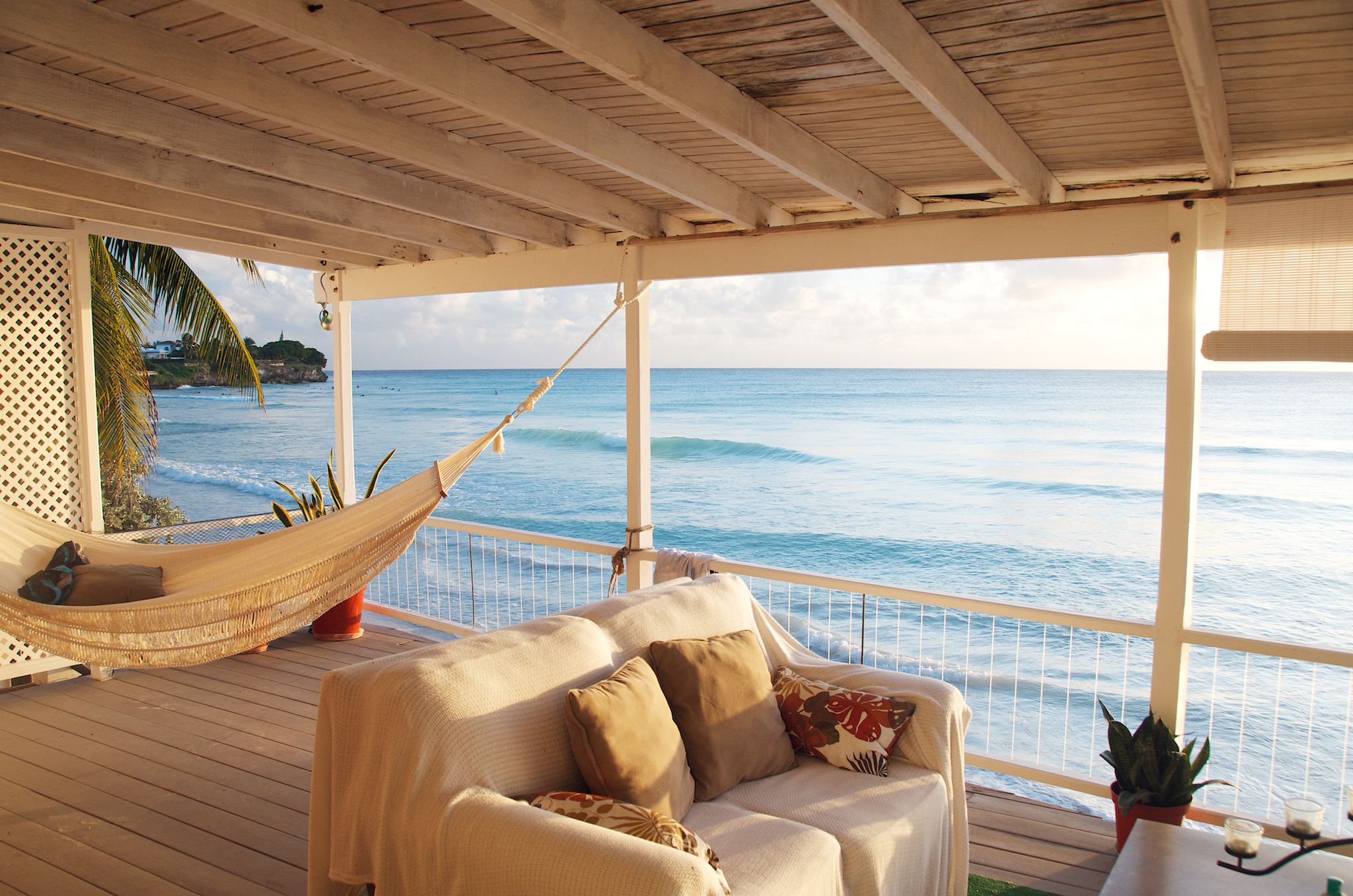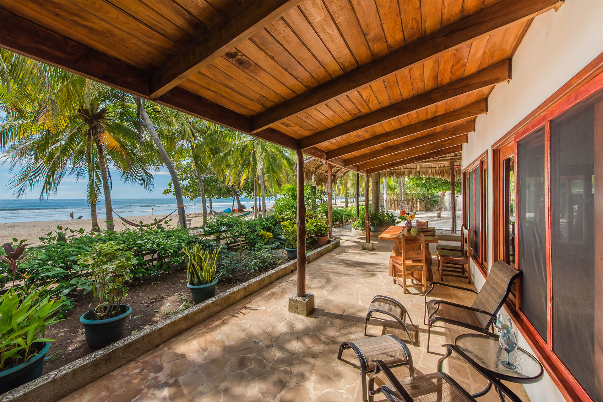 La madera es uno de los materiales predilectos en el estilo playa así como en muchas otras tendencias decorativas, y lo más importante, coloca mucha vegetación que aportará frescura al lugar, utiliza plantas tropicales como palmeras para realzar el aspecto fresco de estar a la orilla del mar.