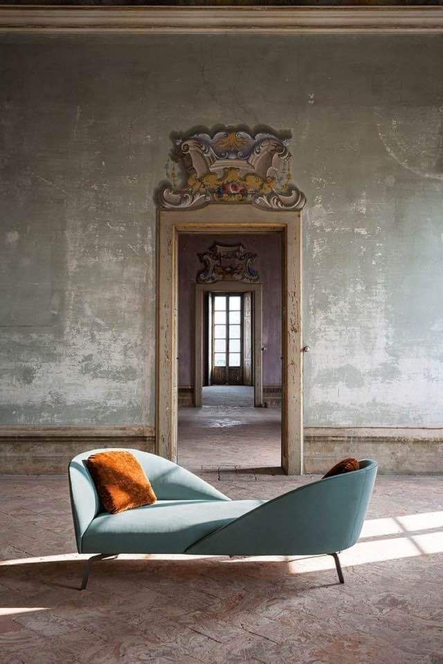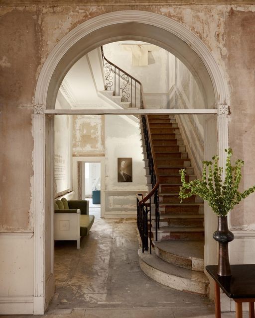 La ‘grandeza desvanecida’ no es un estilo para todos, ya que requiere un cierto grado de preparación para vivir con lo desgastado, lo poéticamente descascarado y lo encantadoramente descuidado. Lo que estamos predispuestos a admirar en una ‘maison de maître’ francesa o en un restaurante italiano en la cima de una colina, con su exquisita pátina envejecida, a menudo puede resultar mucho menos cómodo, ya que oscurece nuestras propias puertas.