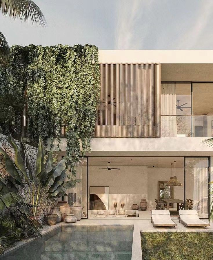 Las fachadas planas ceden paso a volúmenes con relieve, materiales contrastantes y vegetación integrada.