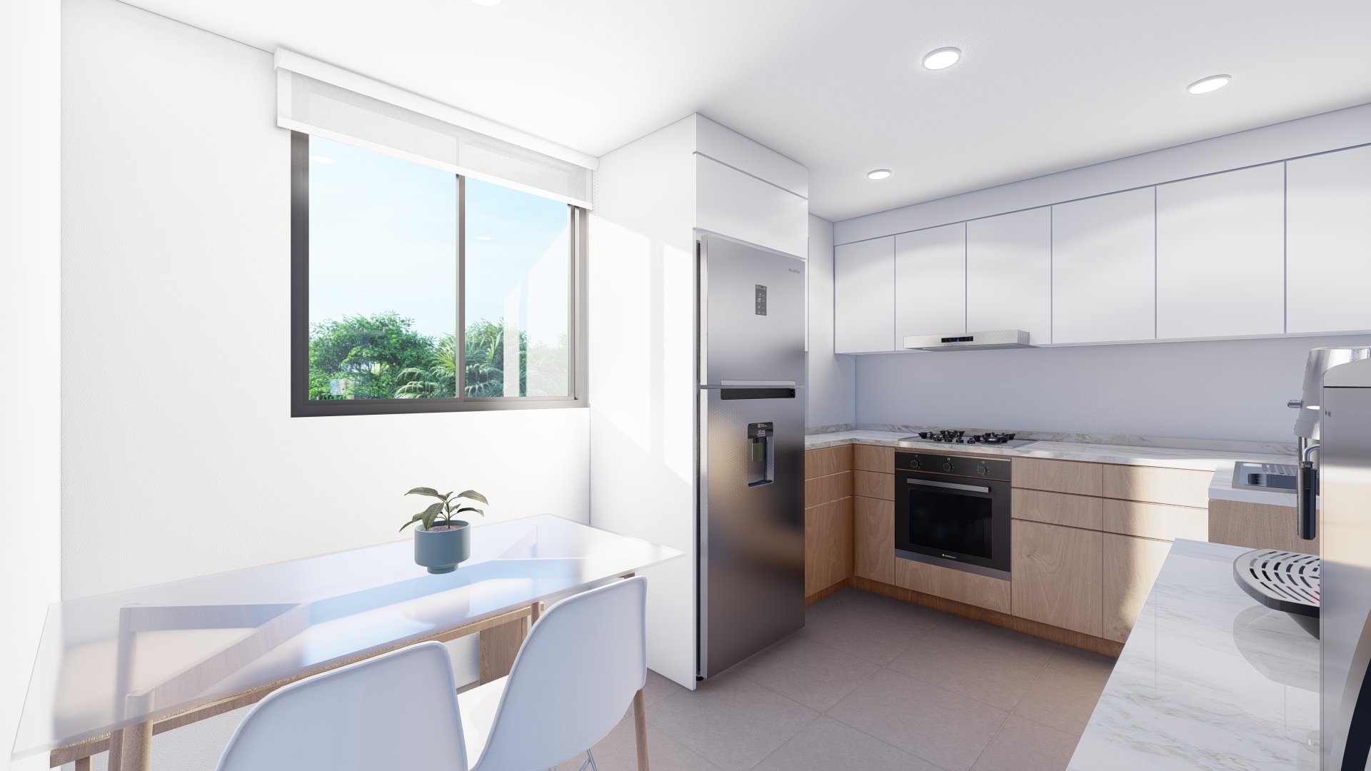 Añadimos toques únicos, frescos y ligeros por medio de texturas y una paleta de colores neutros que nos aportan calma y amplitud en cada área.