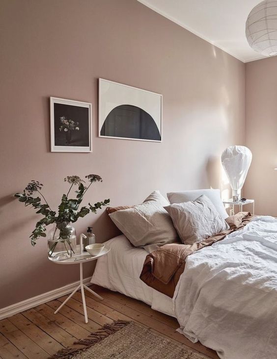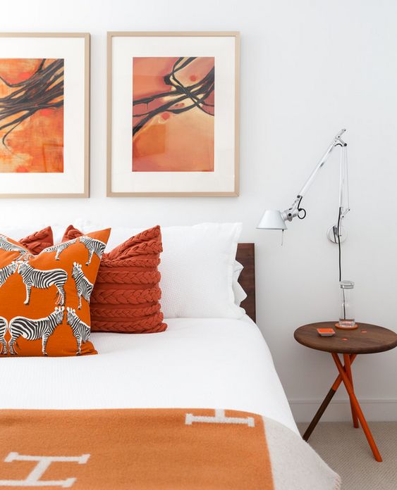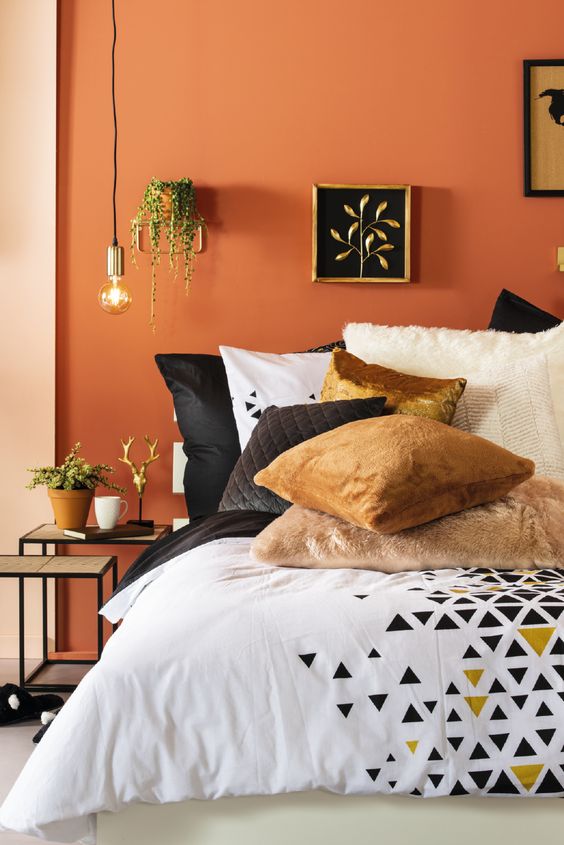 Para las habitaciones matrimoniales el color más indicado es el anaranjado o el rosado porque está relacionado con el romance a la sensualidad y en busca de un conseguir un espacio más cálido y de refugio.