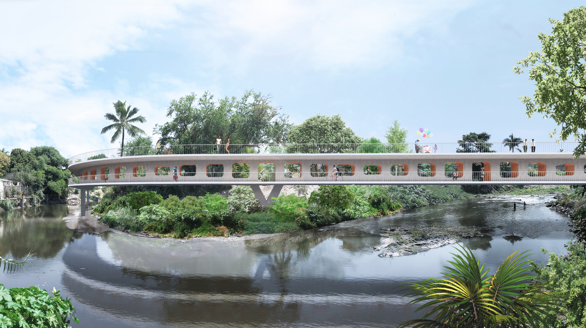 OMA / Shohei Shigematsu diseña un puente peatonal con dos pisos en Jojutla, México