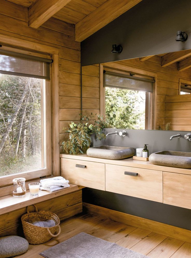 ⦁ Madera: Este material le va a dar elegancia y calidez a tu baño, pero este es el único material de la lista que no puedes colocar en la zona de la regadera debido a que no es resistente al agua ni a la humedad, puedes usar otro material que simula madera, como porcelanatos o vinílicos.