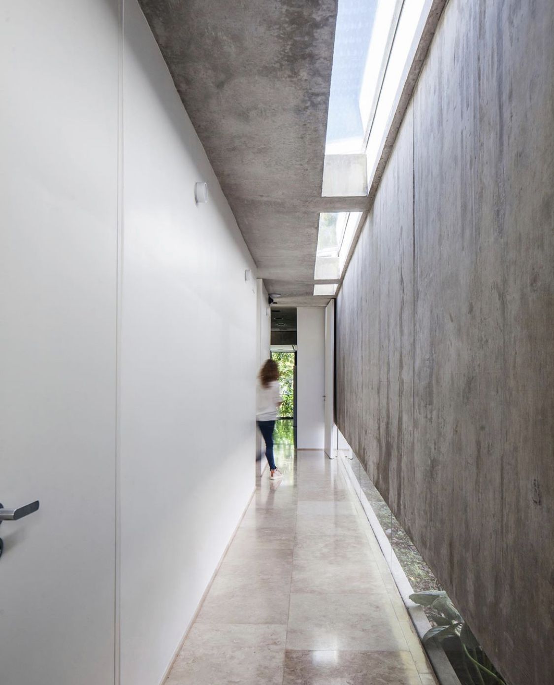 Un mini patio de 1×1 m también funciona como luz cenital indirecta, creando ventilación y luz.