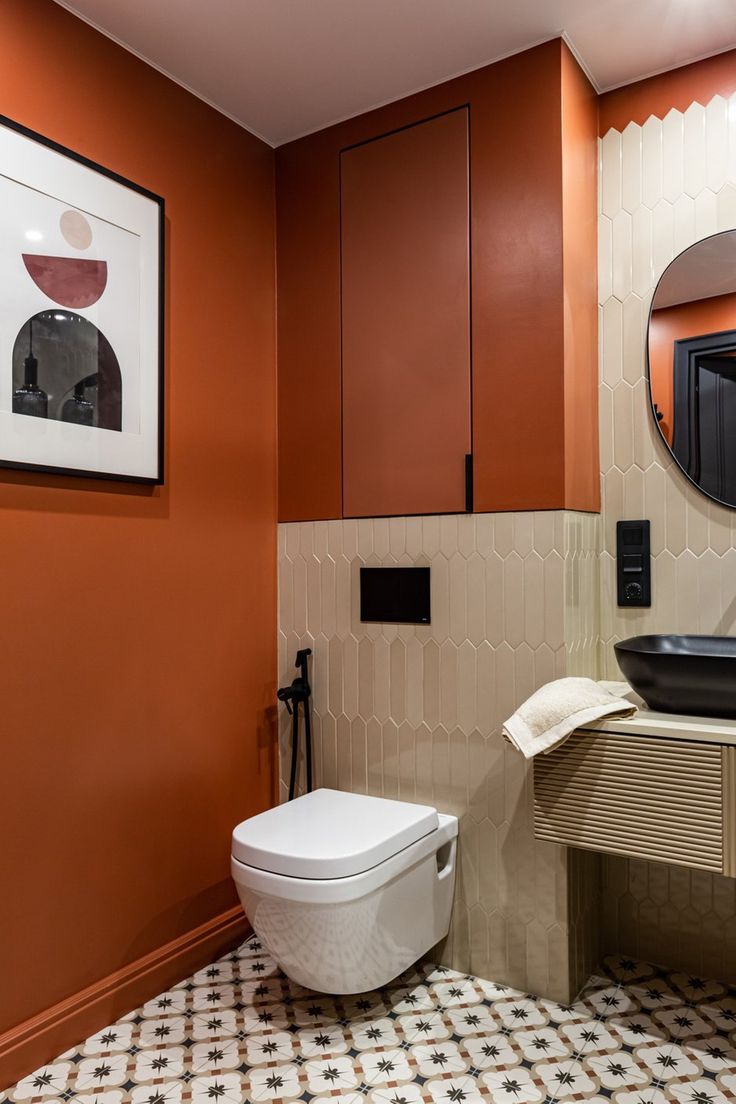 ⦁ Inodoro: Las medidas promedio son 60-80 cm de fondo, 40-60 cm de ancho y 75-80 cm de alto. El centro del inodoro debe de colocarse a 45 cm de una pared y 40 cm de otro elemento en caso de no contar con suficiente espacio. De la punta del inodoro a una pared u otro elemento, se necesita dejar un espacio mínimo de 60 a 75 cm.