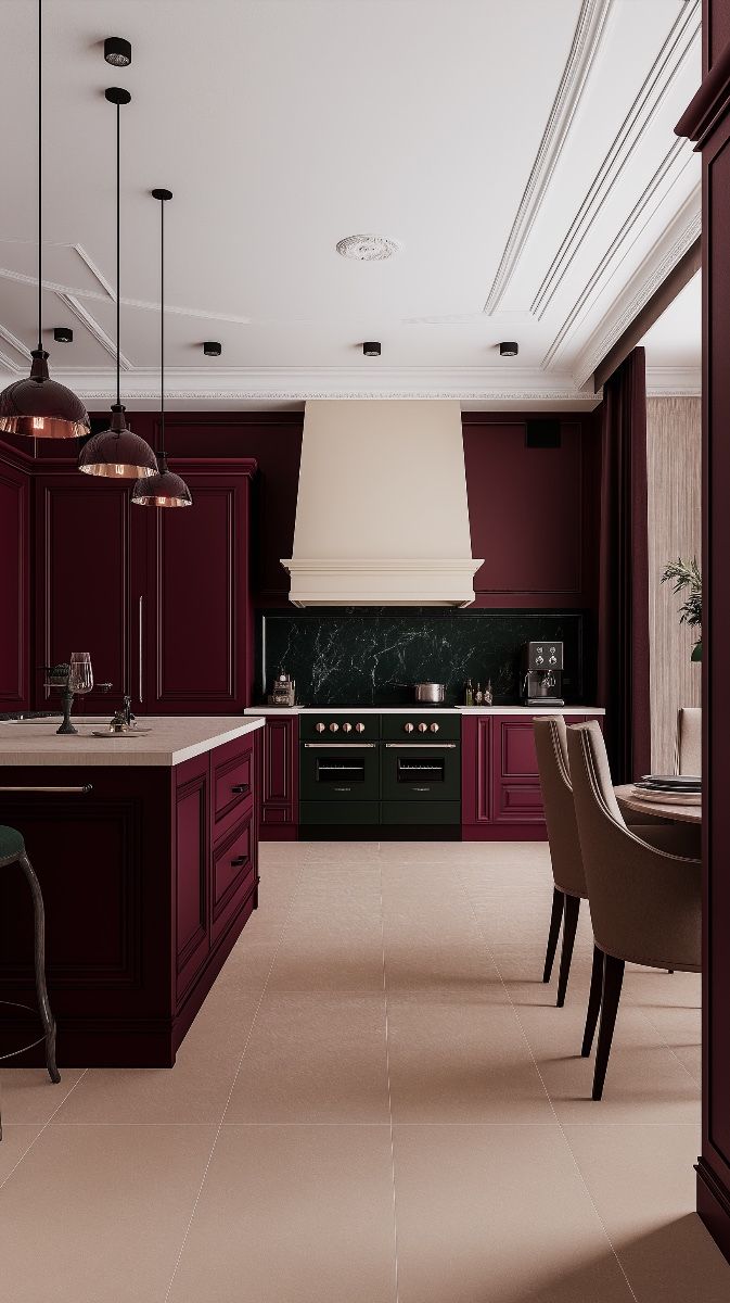 •Las sillas o sofás en terciopelo cereza crean un punto focal elegante y sofisticado.