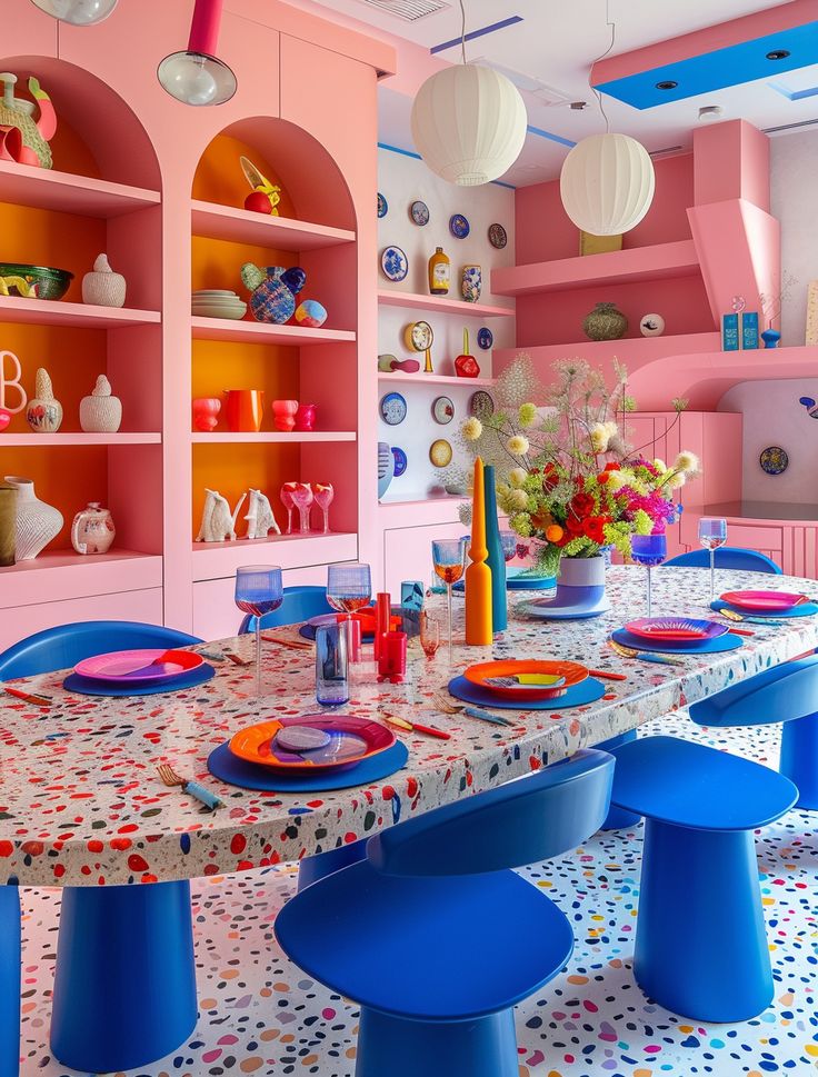 La “repostería caótica” inspira una mezcla de formas orgánicas y divertidas en la decoración.