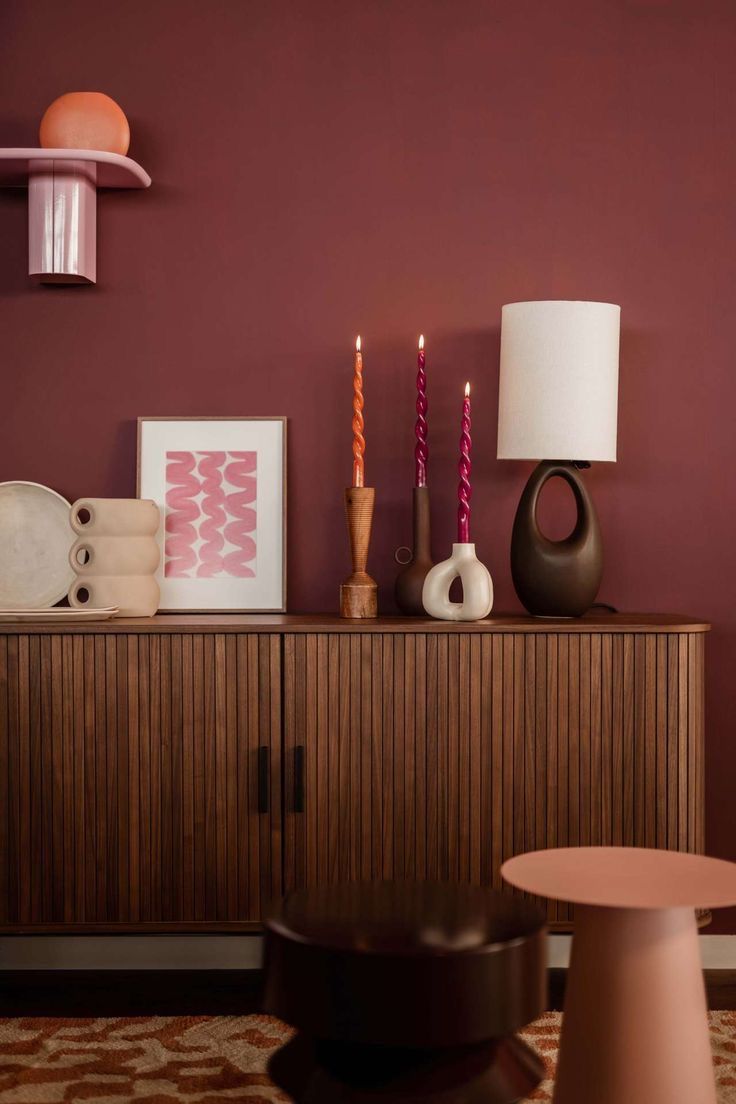 •Integra accesorios como floreros, lámparas o arte con matices cereza para un toque discreto.
