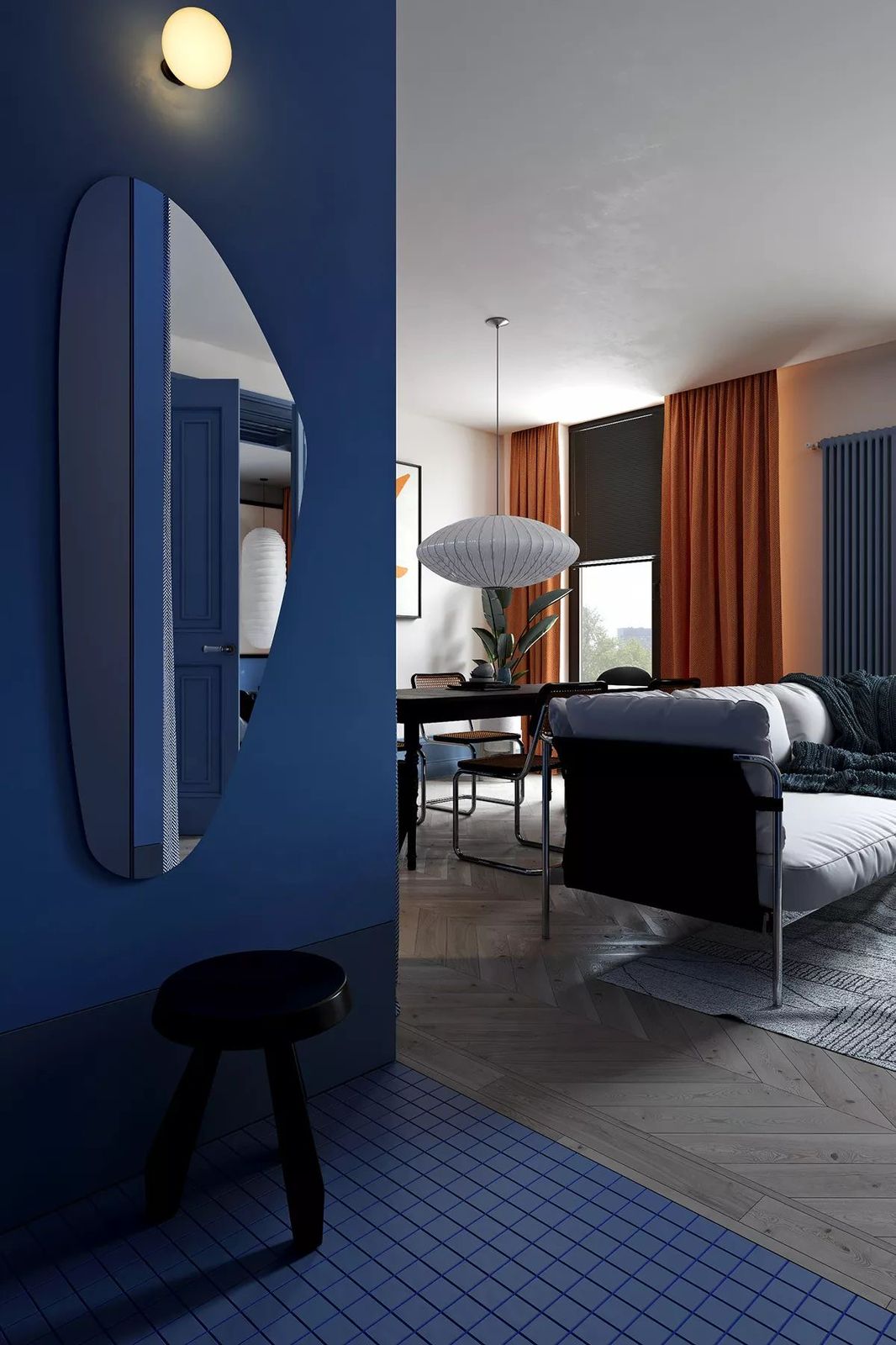 •Tip: Azul marino en cocinas modernas + mármol blanco = sofisticación atemporal.