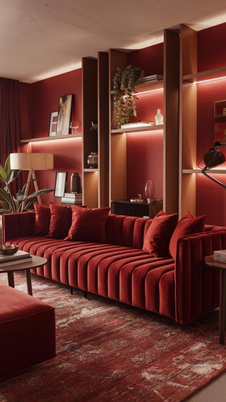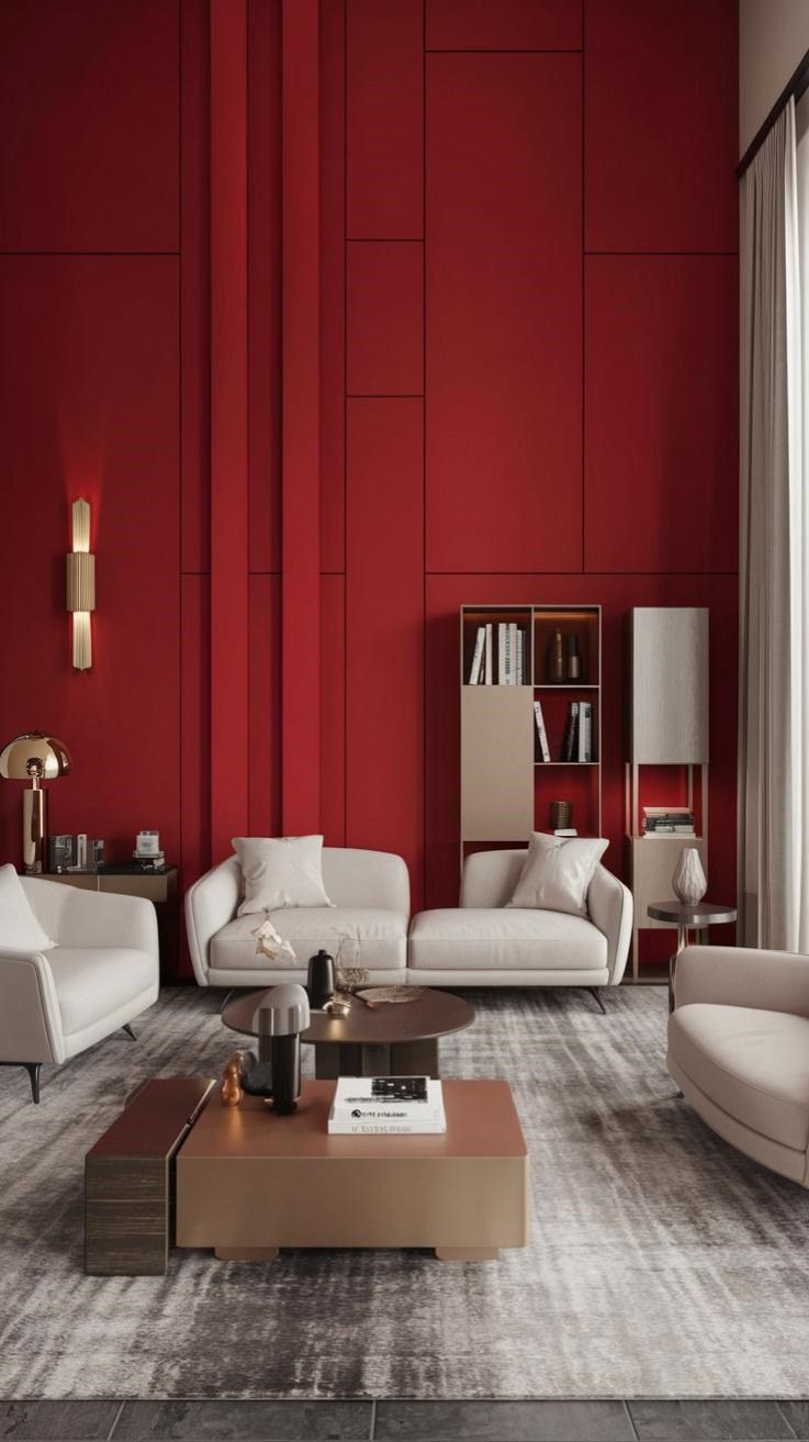 •Tip: Si lo quieres en casa, úsalo en acentos (sillas, cojines, cuadros). Un muro completo rojo puede ser sofocante si no se equilibra con neutros.