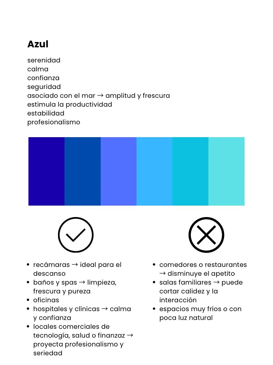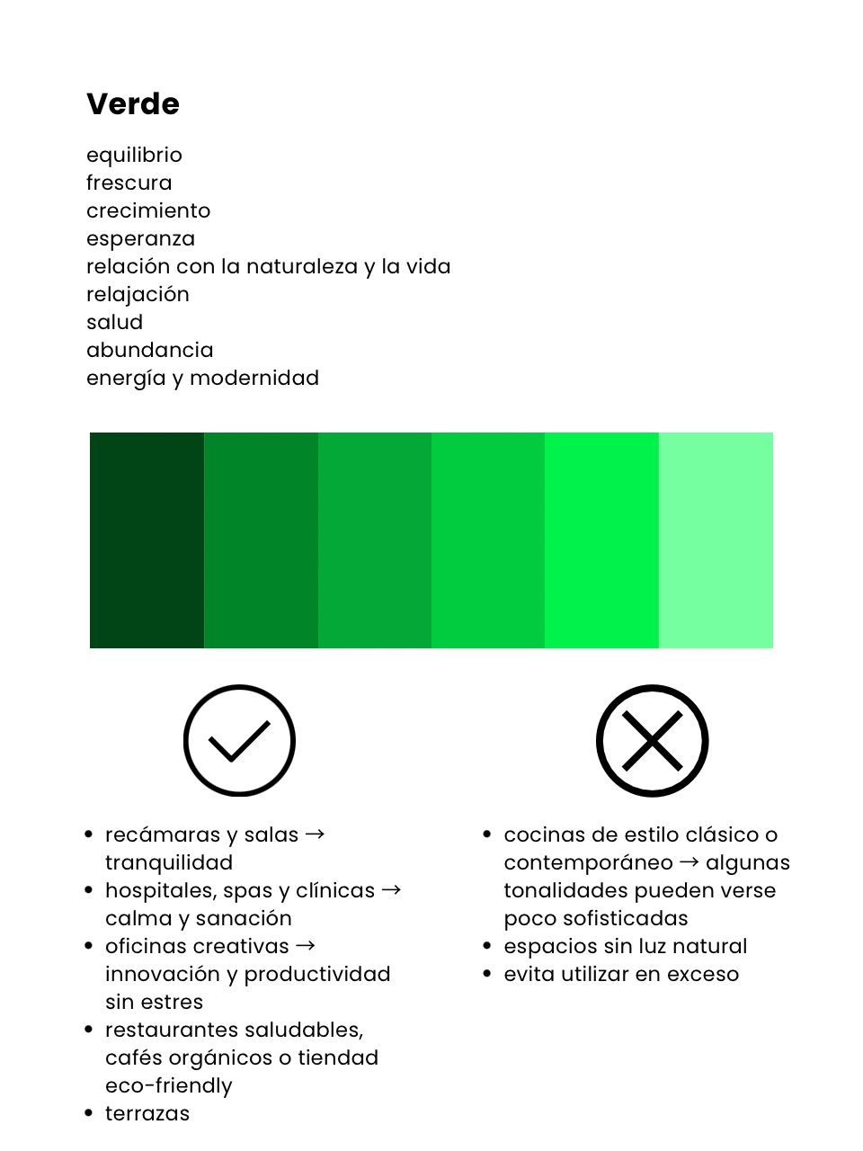 •Psicología: Relajante, refrescante y restaurador. Reduce el estrés visual y transmite armonía.