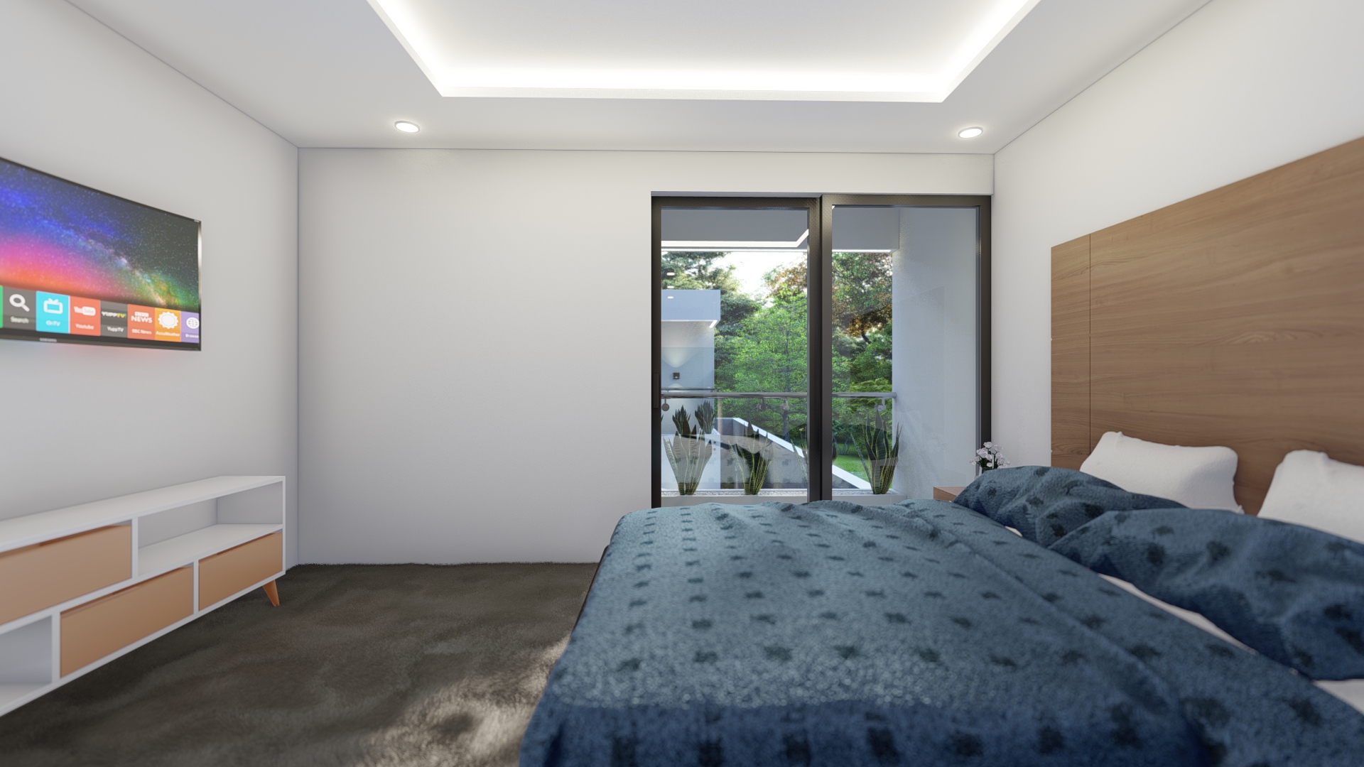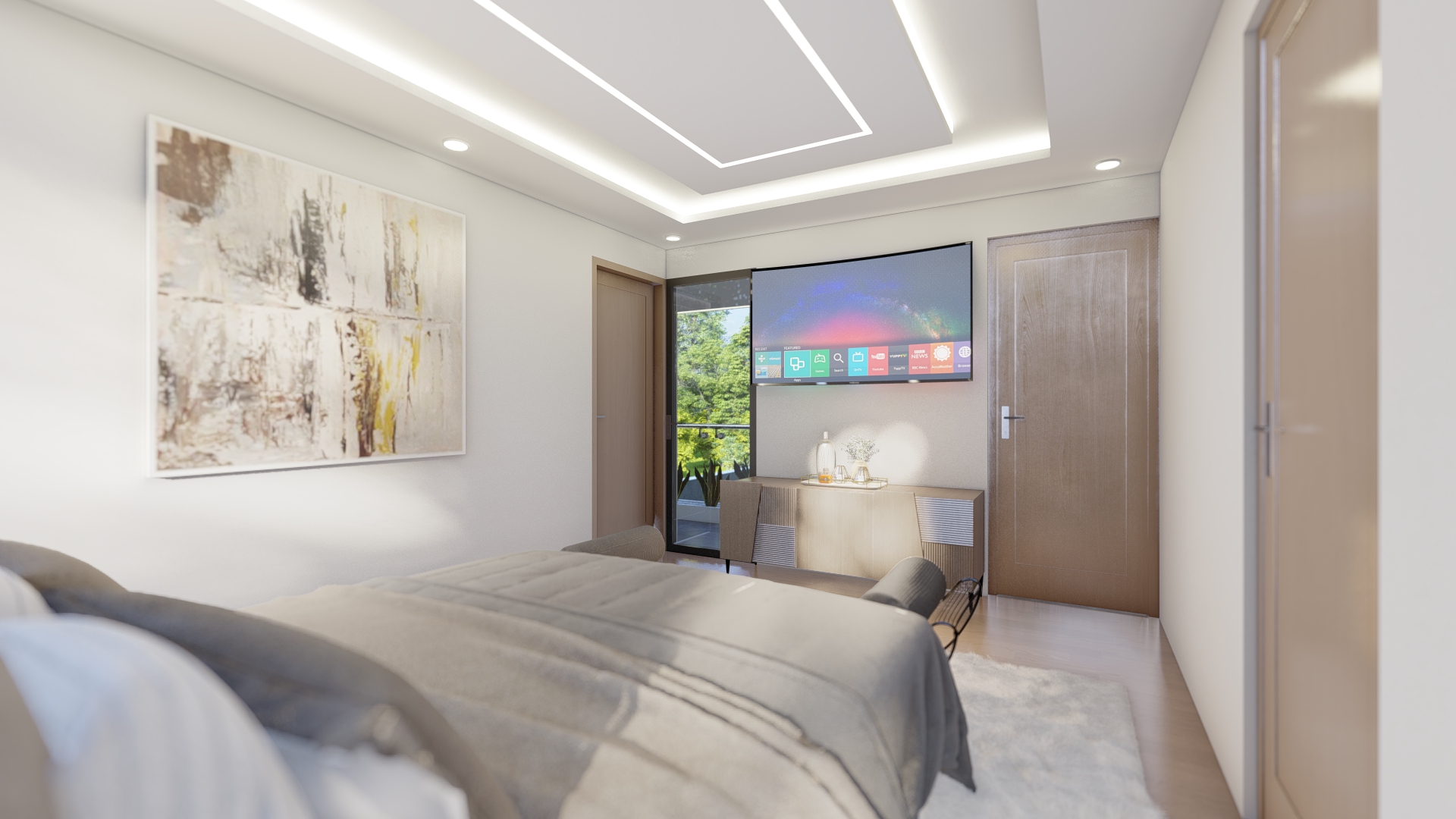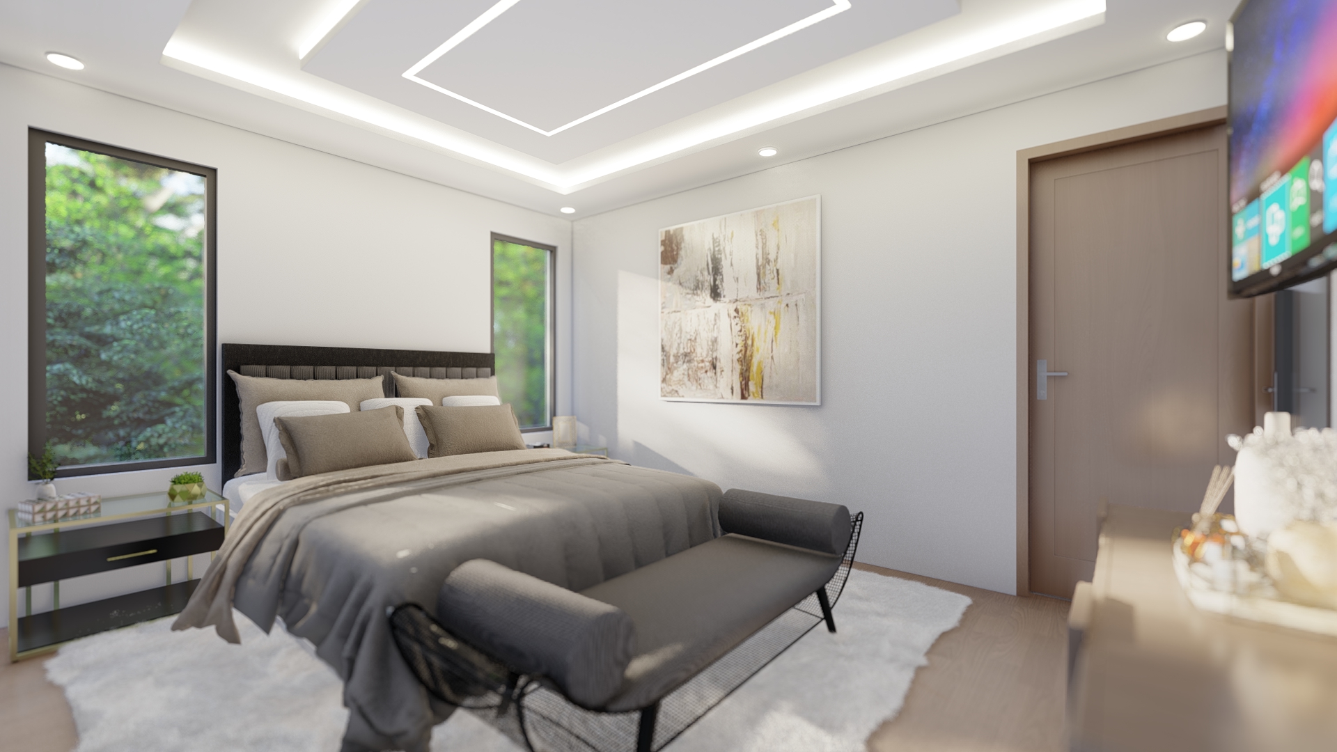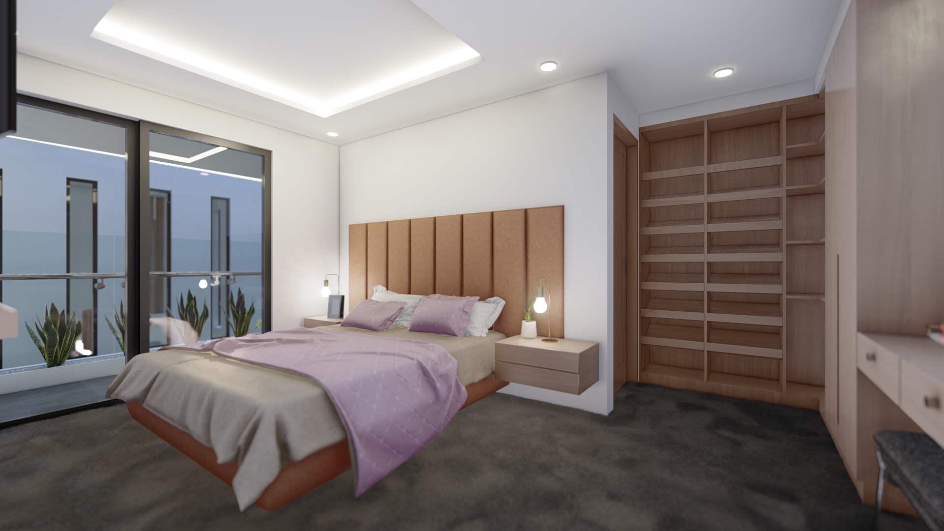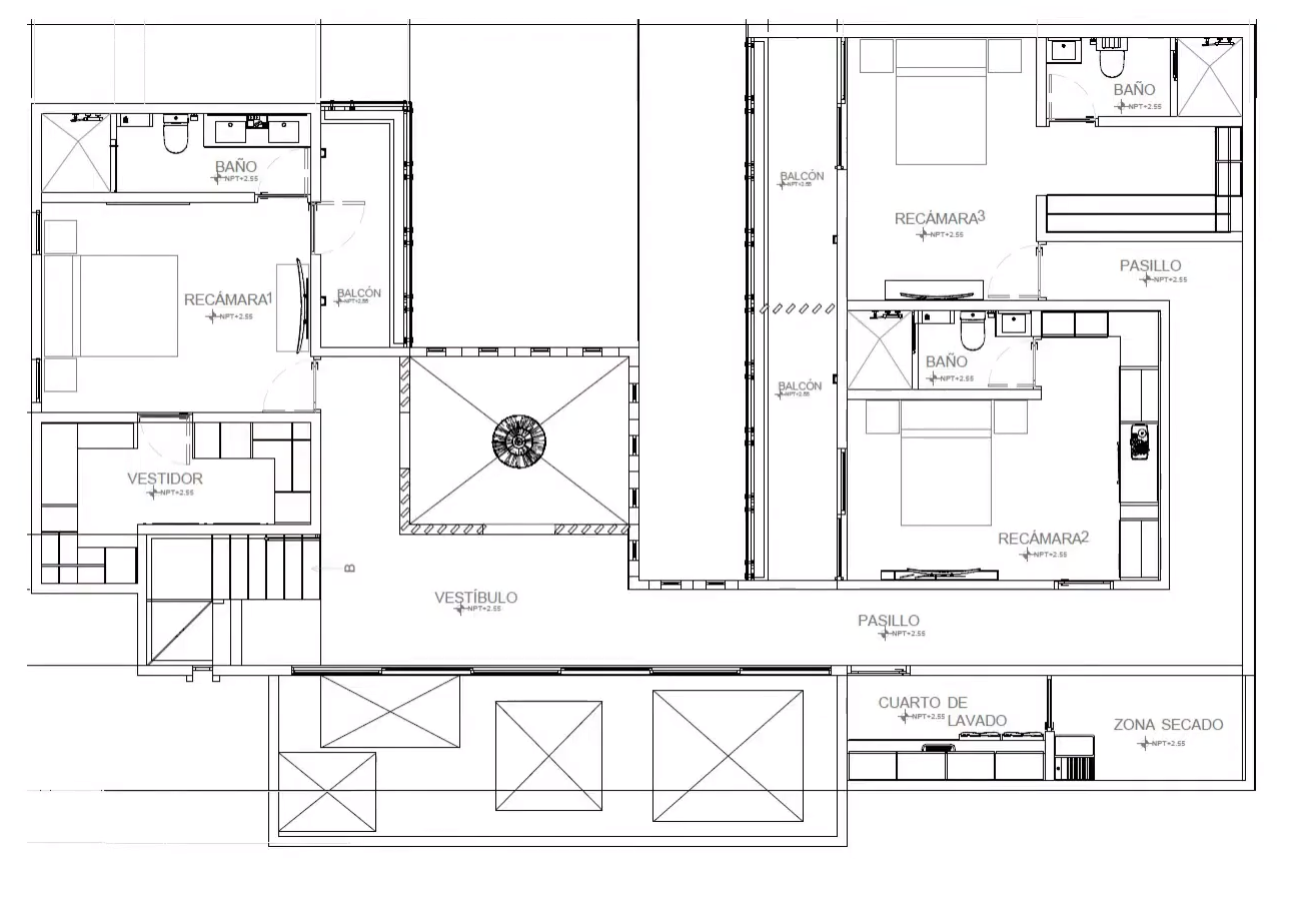En este nivel tenemos tres recámaras, la recámara principal, con baño completo, vestidor y un balcón con vista al jardín zen. En el otro extremo se encuentran las dos recámaras secundarias, ambas con baño completo, closet y balcón con vista al jardín.