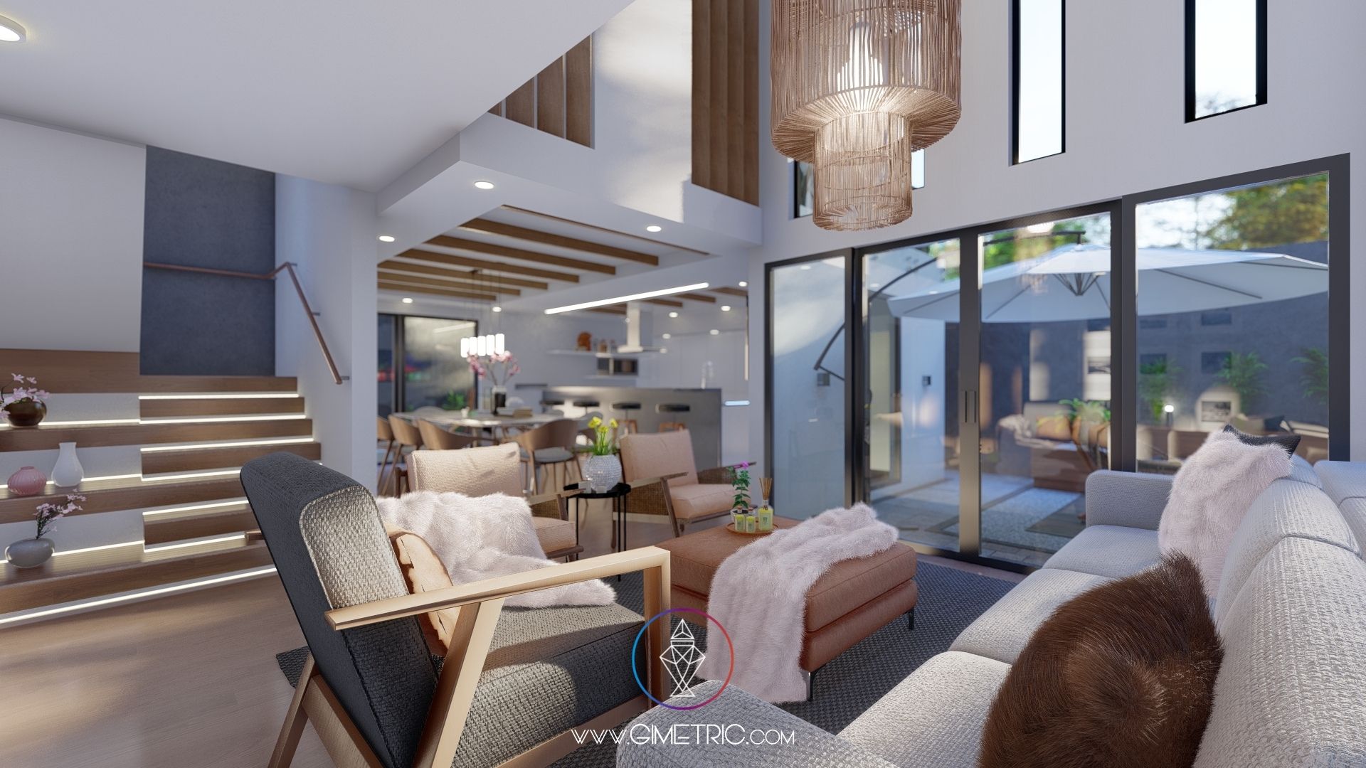 Roble 23 es un proyecto diseñado por Gimetric Arquitectos en un terreno de 300 m2 con 320 m2 de construcción que tiene como requerimiento principal cero ventanas al exterior. Tomando como concepto la arquitectura introspectiva, el japandi y el minimalismo; todo esto para generar un espacio cómodo y elegante pero con bajo costo de construcción y mantenimiento.