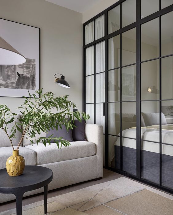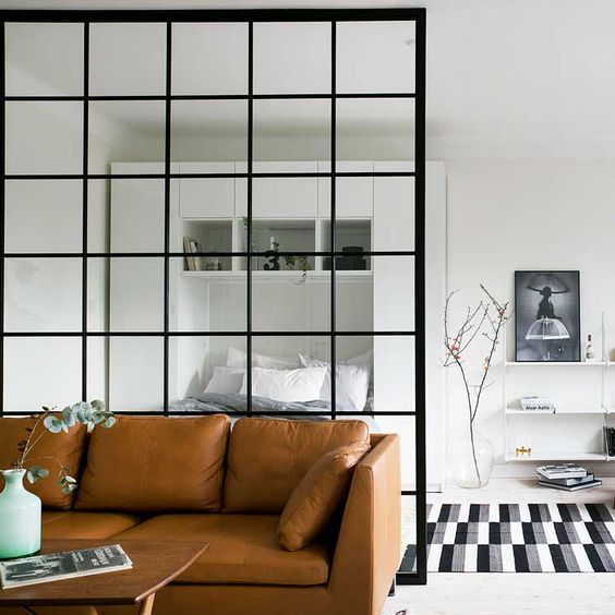 Paneles de Cristal o Vidrio: Los paneles de cristal son perfectos para dividir áreas sin bloquear la luz natural. Puedes optar por cristal transparente, esmerilado o incluso con diseños geométricos para añadir un toque de estilo.Recomendación: Este tipo de separador es ideal para estudios pequeños o lofts, donde mantener la luz es esencial.