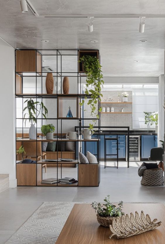 Juega con la Altura y el Tamaño: No todos los separadores deben ser del tamaño completo de la habitación. A veces, una estructura baja o una estantería a media altura es suficiente para crear una distinción visual sin sobrecargar el espacio.