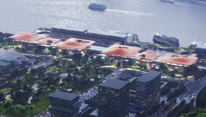 – Centro Internacional de Cruceros en Chongqing Cuntan (RPC). Los chinos MAD Architects serán los autores de la próxima terminal internacional de pasajeros en la ciudad de Chongqing Cuntan. Los chinos nos tienen acostumbrados a su estética futurista pero con base tradicional. En este caso, acierta al completo con estas plataformas elevadas que a su vez albergan plazas cubiertas y áreas de estancia, mientras que la base queda como espacio libre de parque.