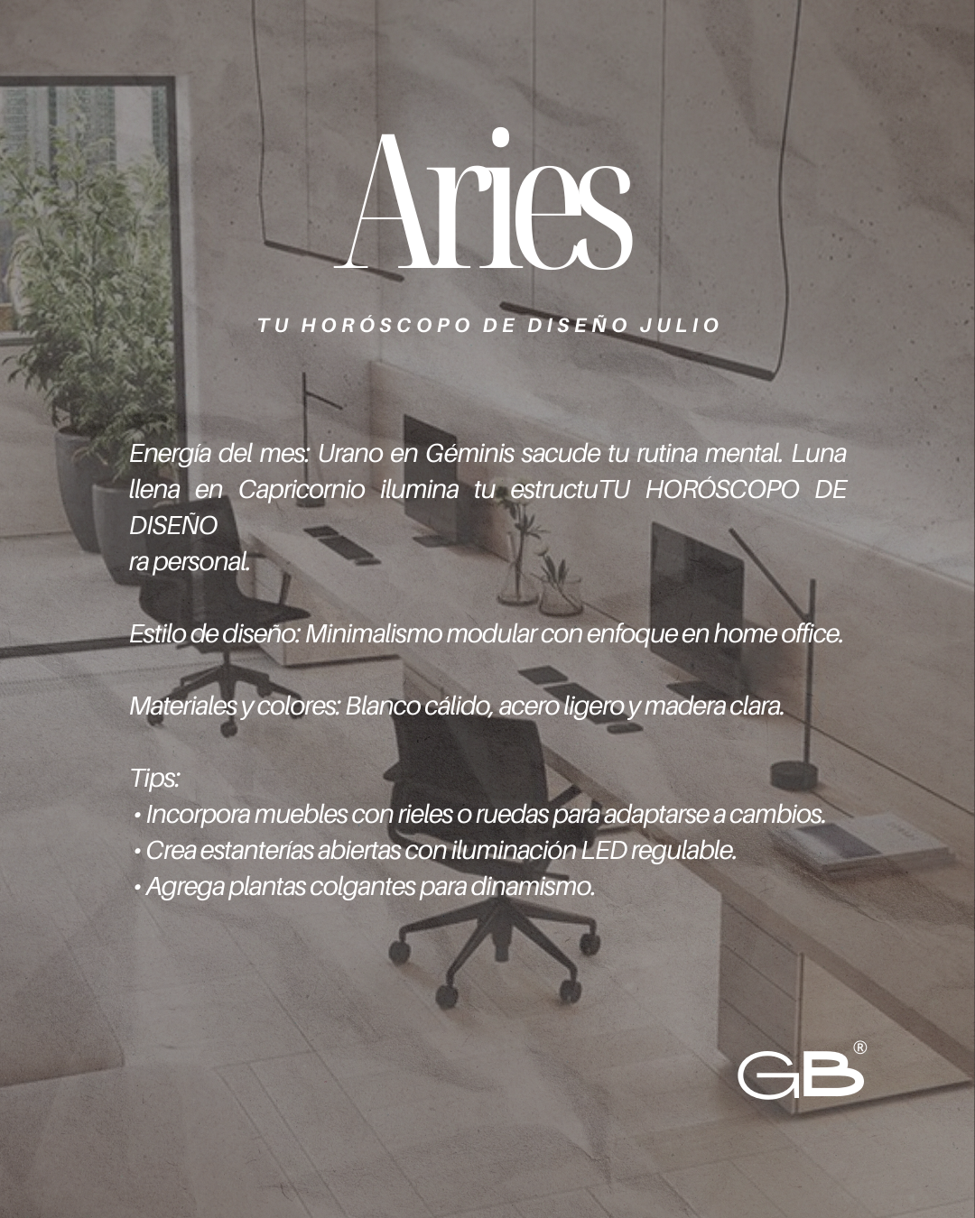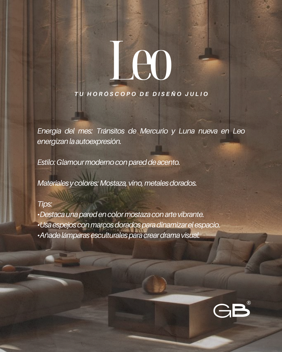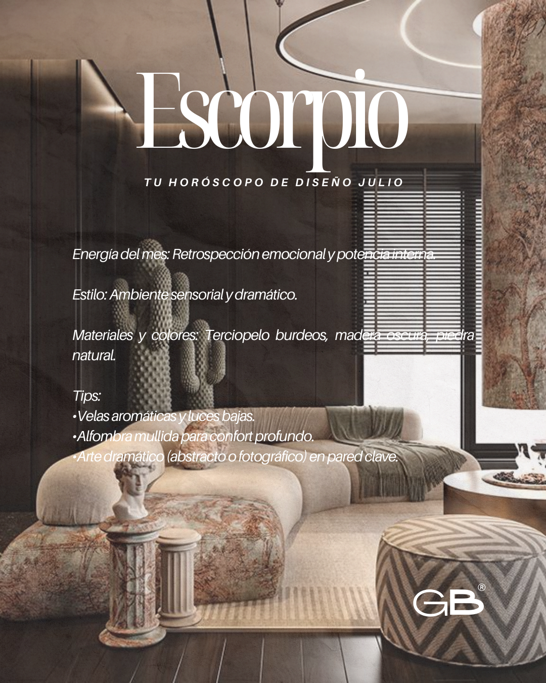 Julio estará marcado por una energía intensa y transformadora que nos invita a reflexionar, reinventarnos y expresarnos con autenticidad. Usa este horóscopo de diseño para alinear tu entorno con las vibraciones cósmicas del mes — y recuerda que cada espacio es una extensión de tu propósito y bienestar.
