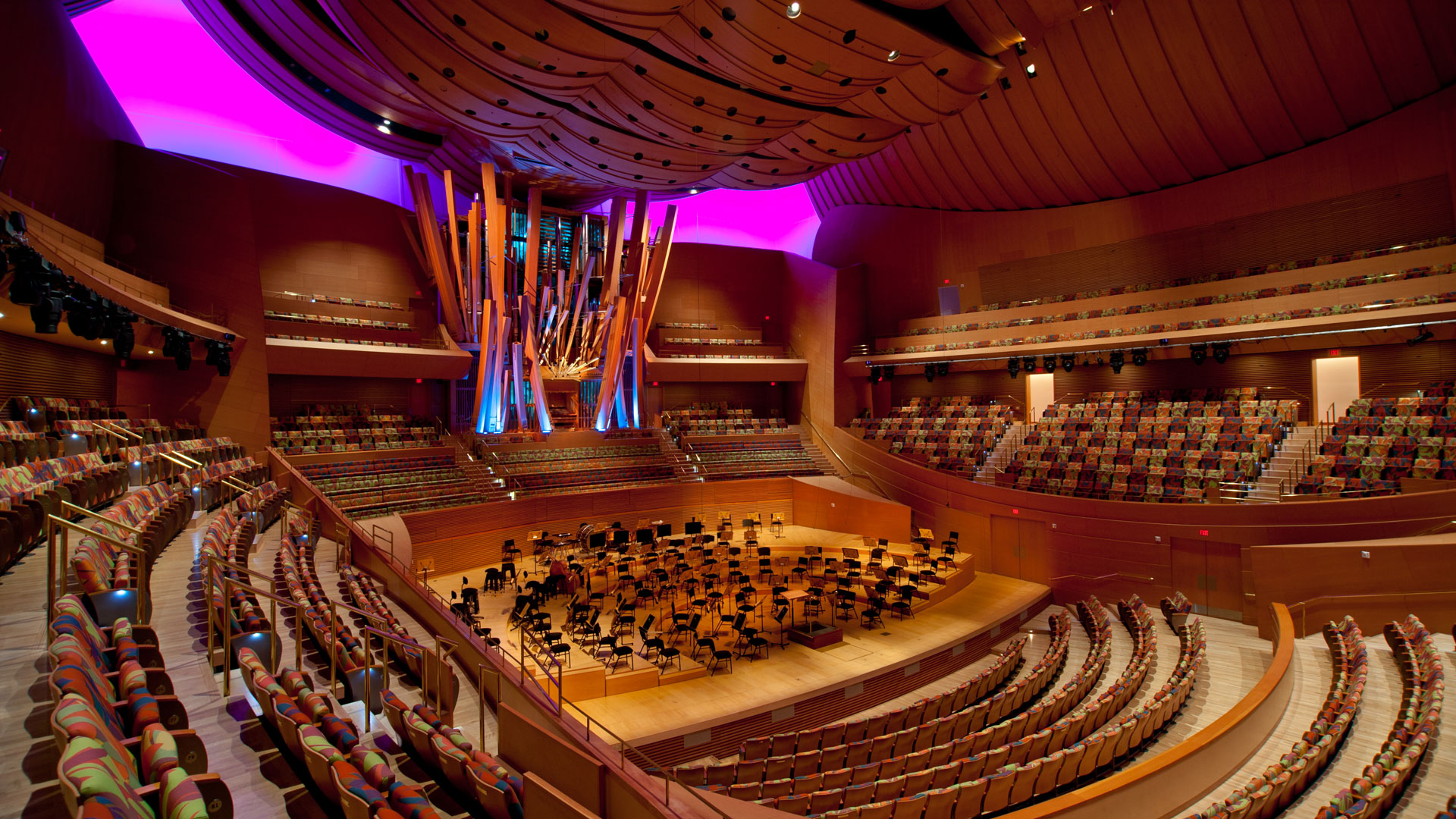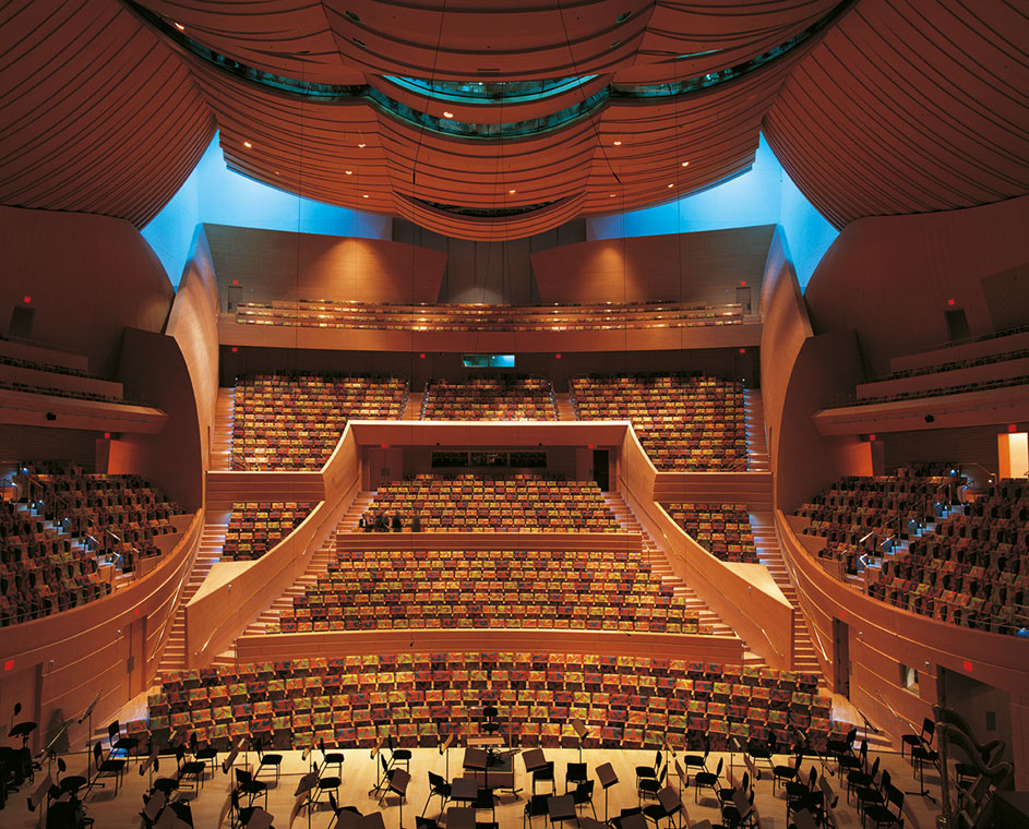 La idea del arquitecto fue la de concebir una sala con una forma escultórica evocativa de la música, logrando una conexión íntima entre la orquesta y la audiencia. El espacio más importante dentro del complejo es el auditorio con capacidad para 2.265 personas. Esta sala se diseñó con extremo cuidado en la calidad acústica.